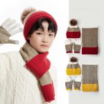 Winter Children’s hat scarf gloves three-piece set men’s and women’s warm scarf cold-proof medium and big children’s knitted wool hat