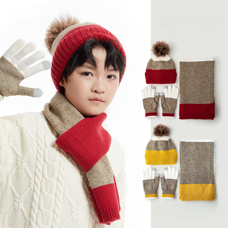 Winter Children's hat scarf gloves three-piece set men's and women's warm scarf cold-proof medium and big children's knitted wool hat