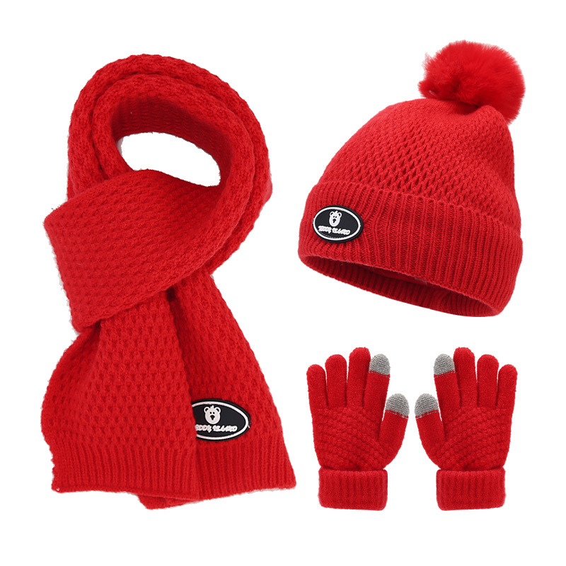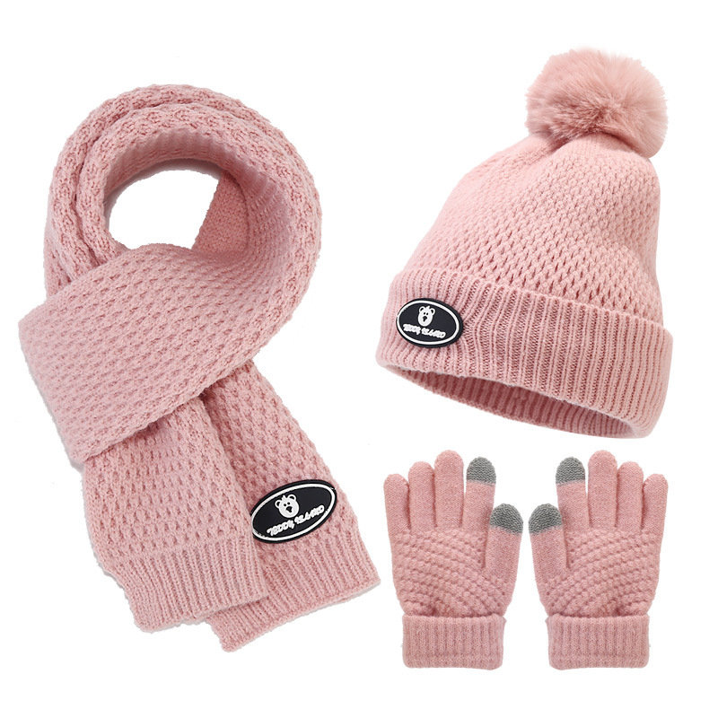 | nameOriginal | Winter Children's knitted hat scarf gloves three-piece bear standard fleece-lined wool hat outdoor cold-proof warm suit |