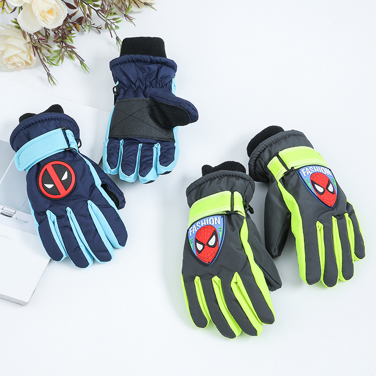 Winter children's ski gloves outdoor sports plus velvet padded gloves waterproof windproof warm riding gloves wholesale