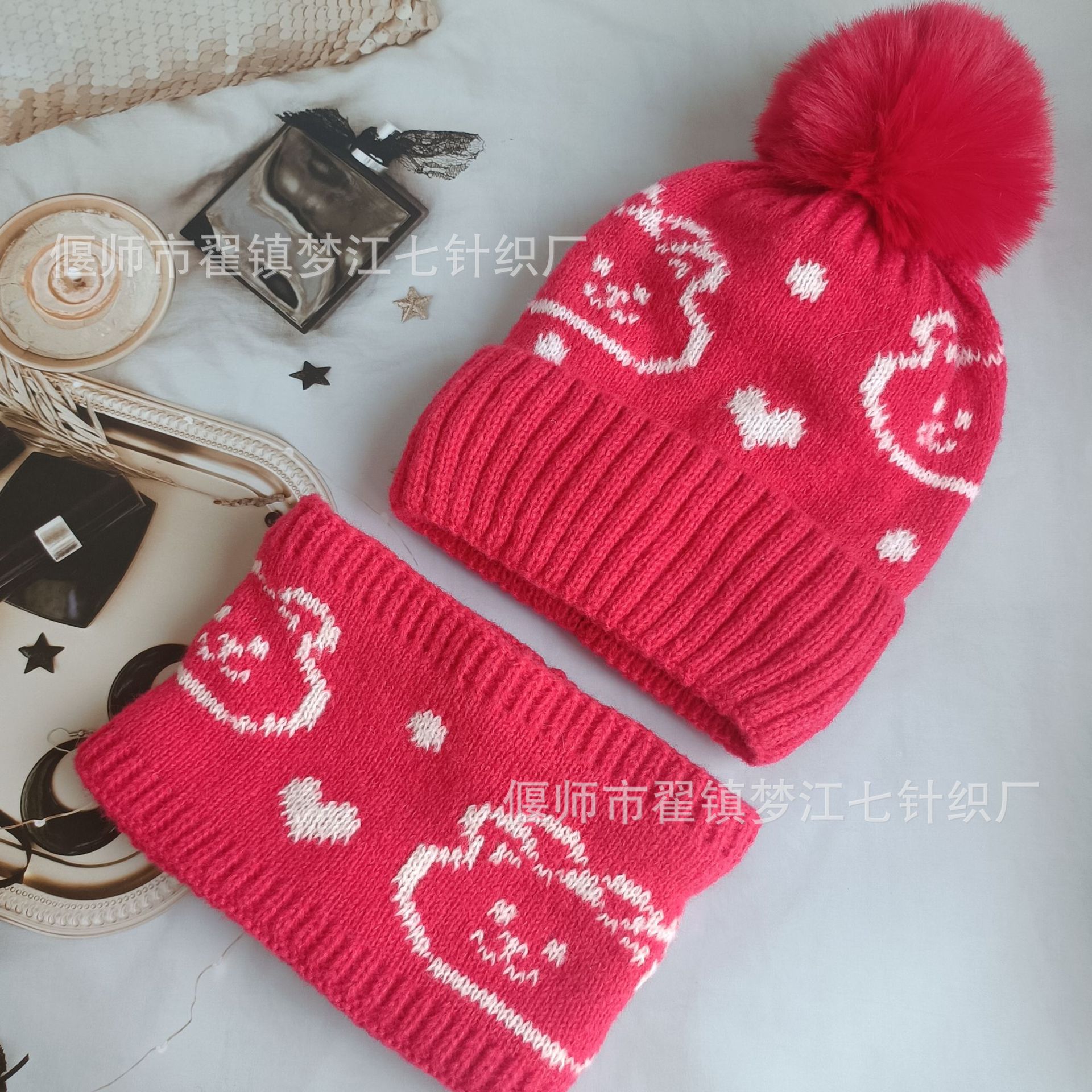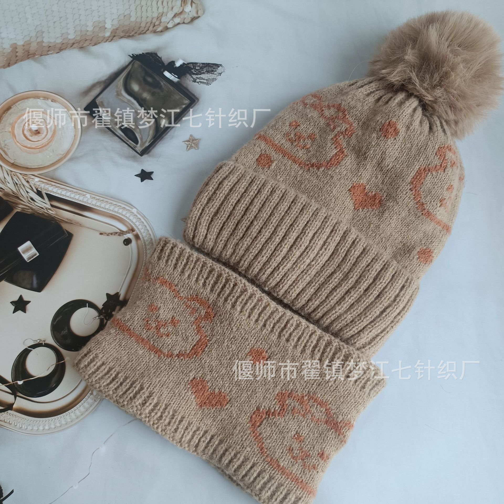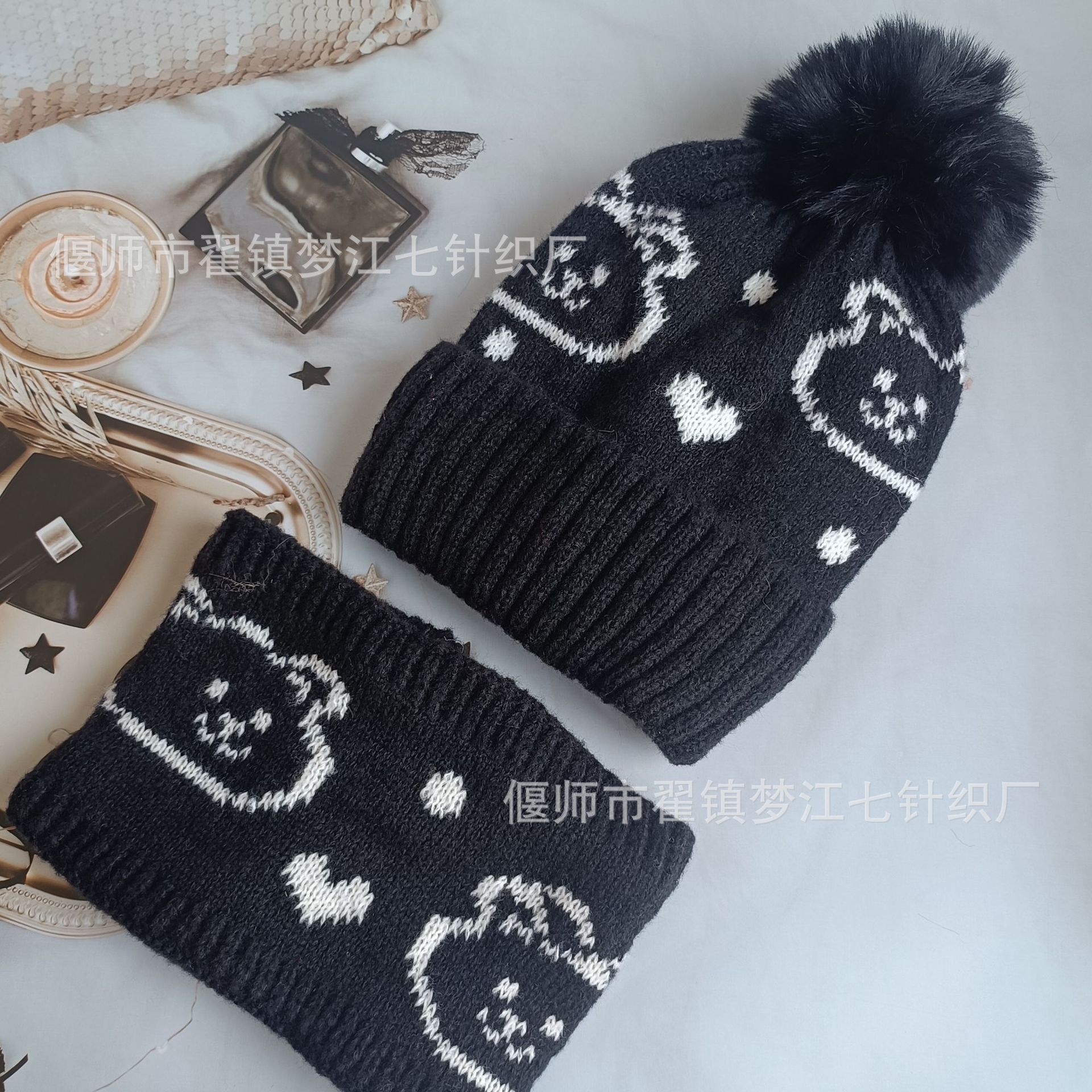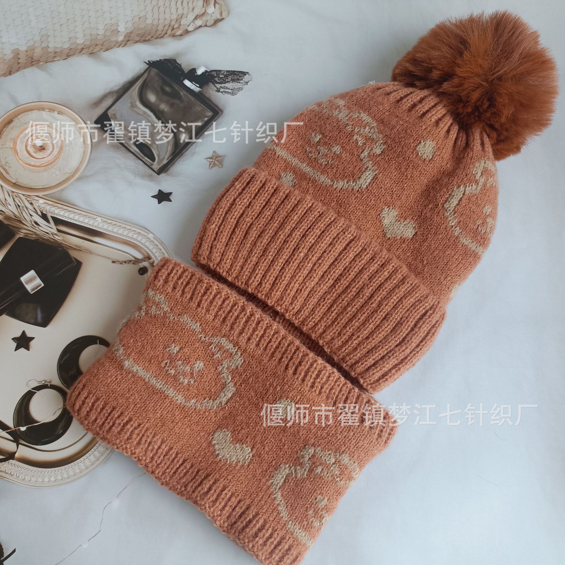 Winter Children’s stand card bear cute knitted wool hat scarf two-piece set autumn and winter fleece-lined windproof warm