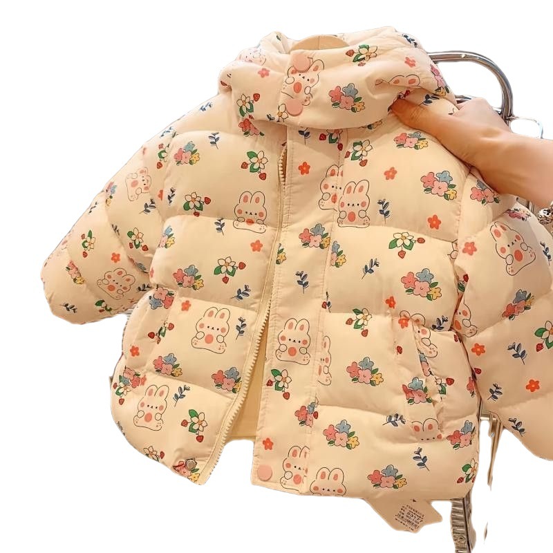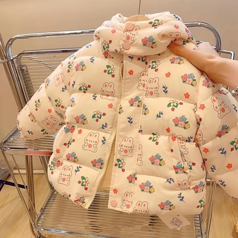 Winter Cold-proof Children's Cotton-padded Coat Fleece-lined Thickened Cartoon Print Winter Fashion Warm Hooded Jacket for Boys and Girls