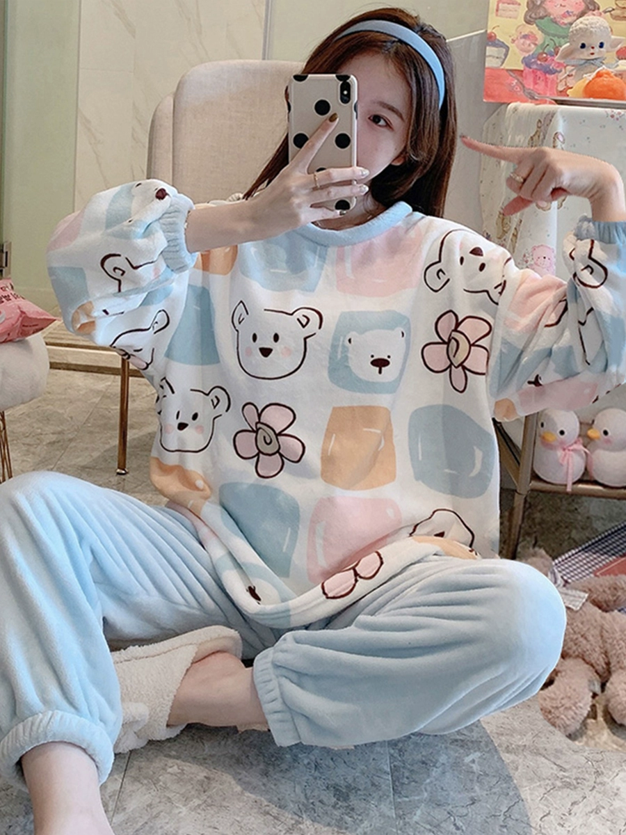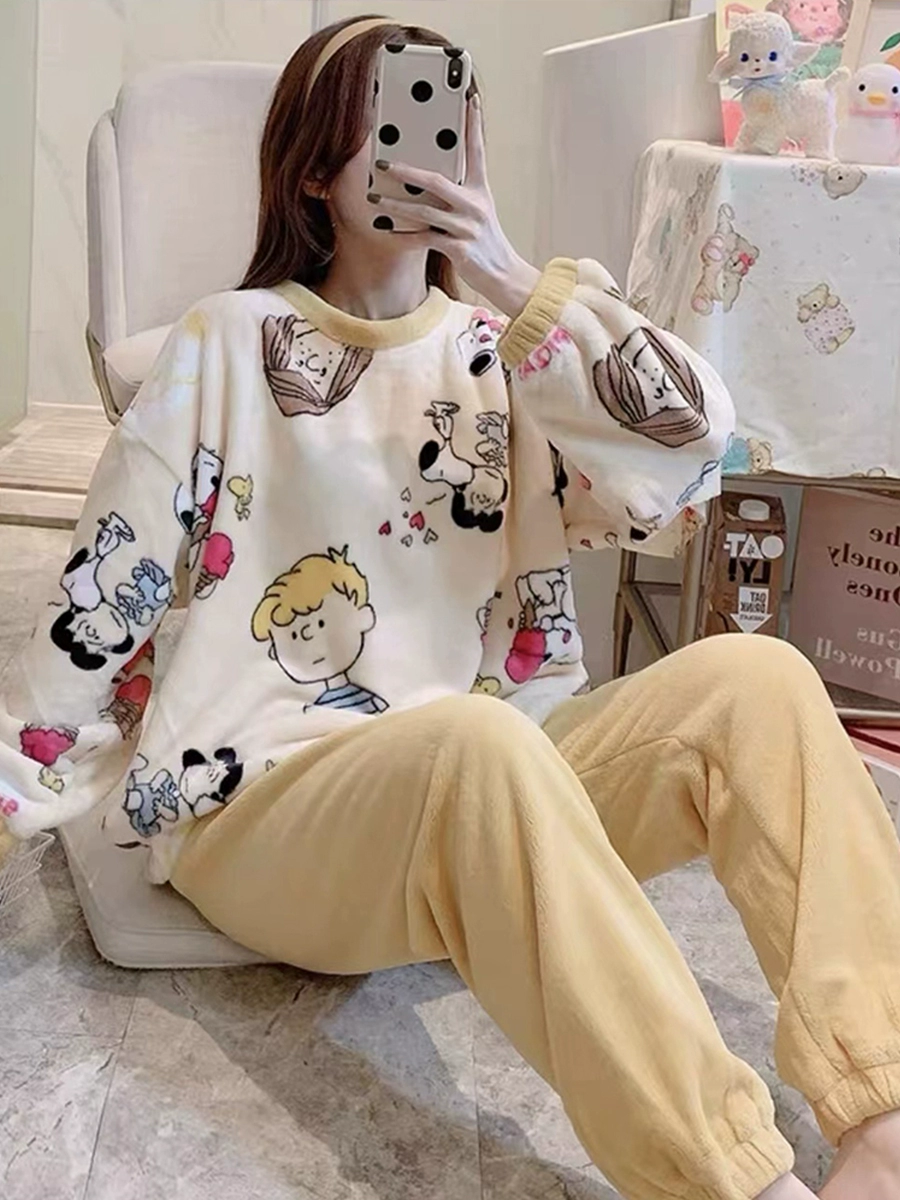 | nameOriginal | Winter coral velvet pajamas for women in autumn and winter new plus velvet winter style cute cartoon flannel home clothes winter suit |