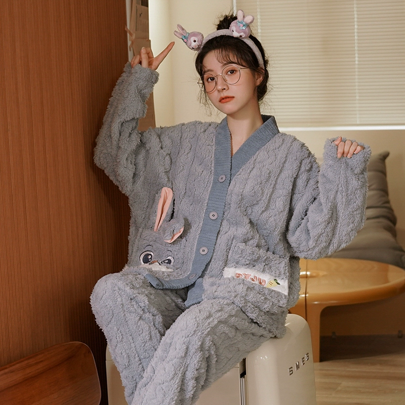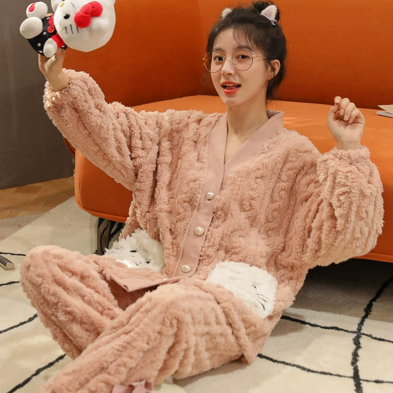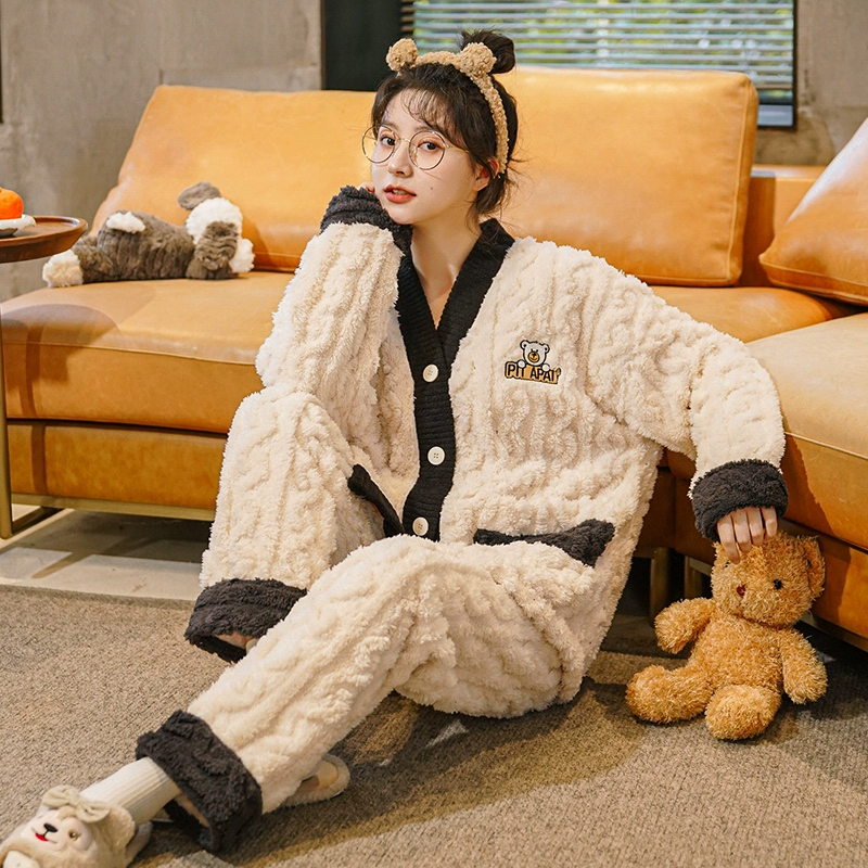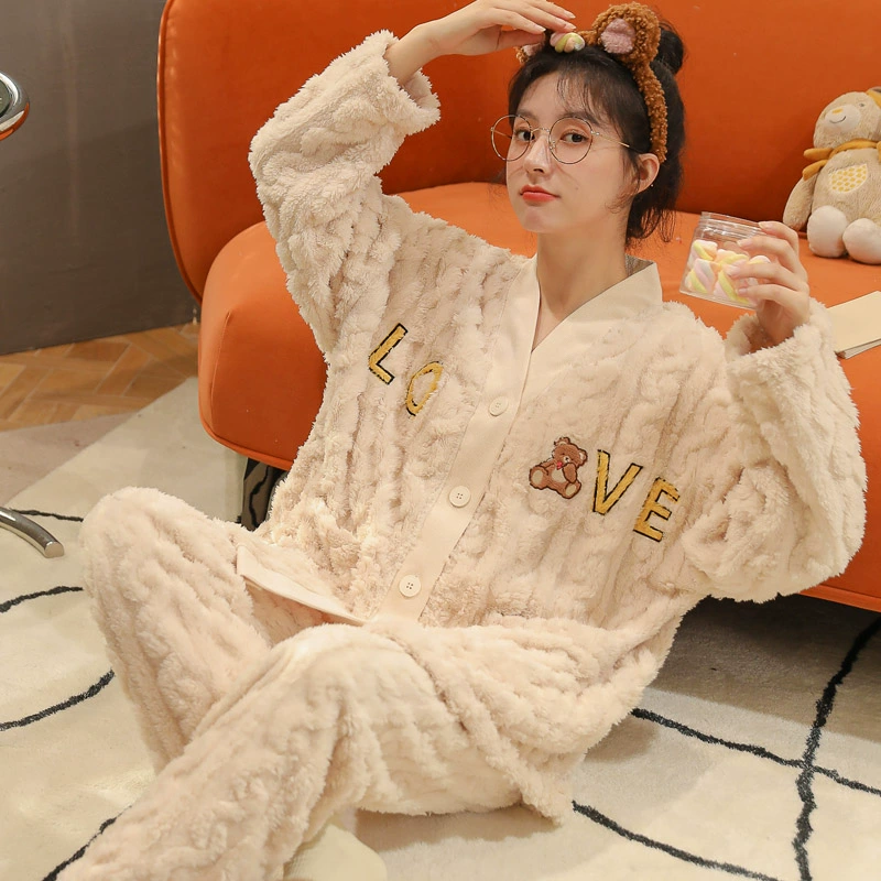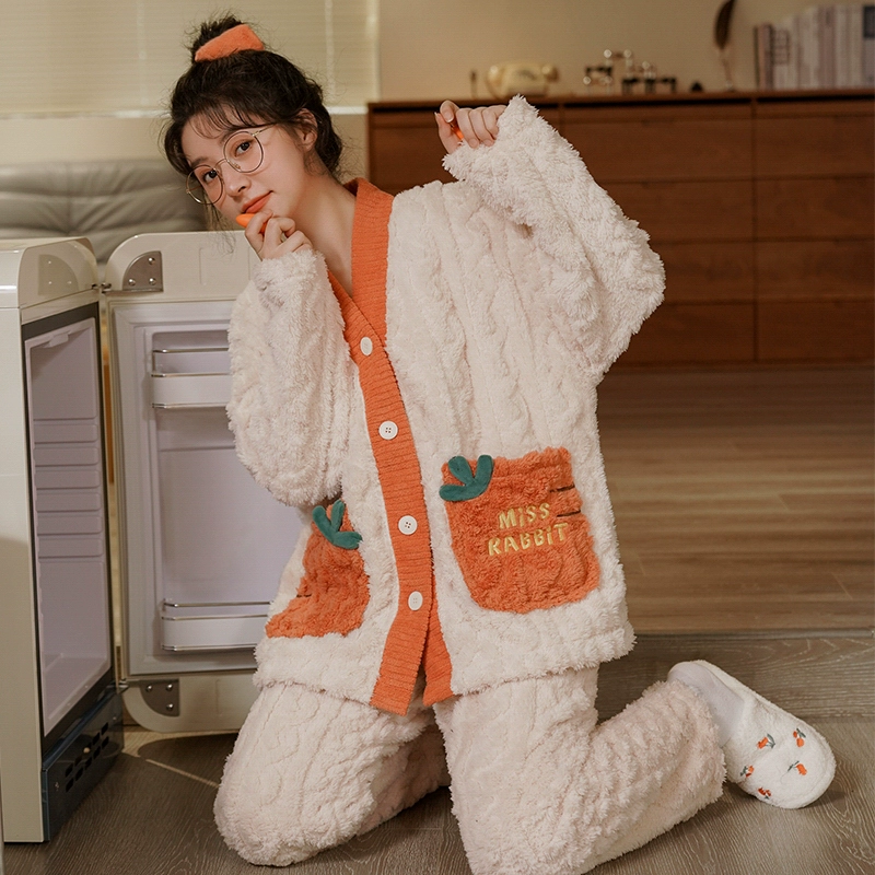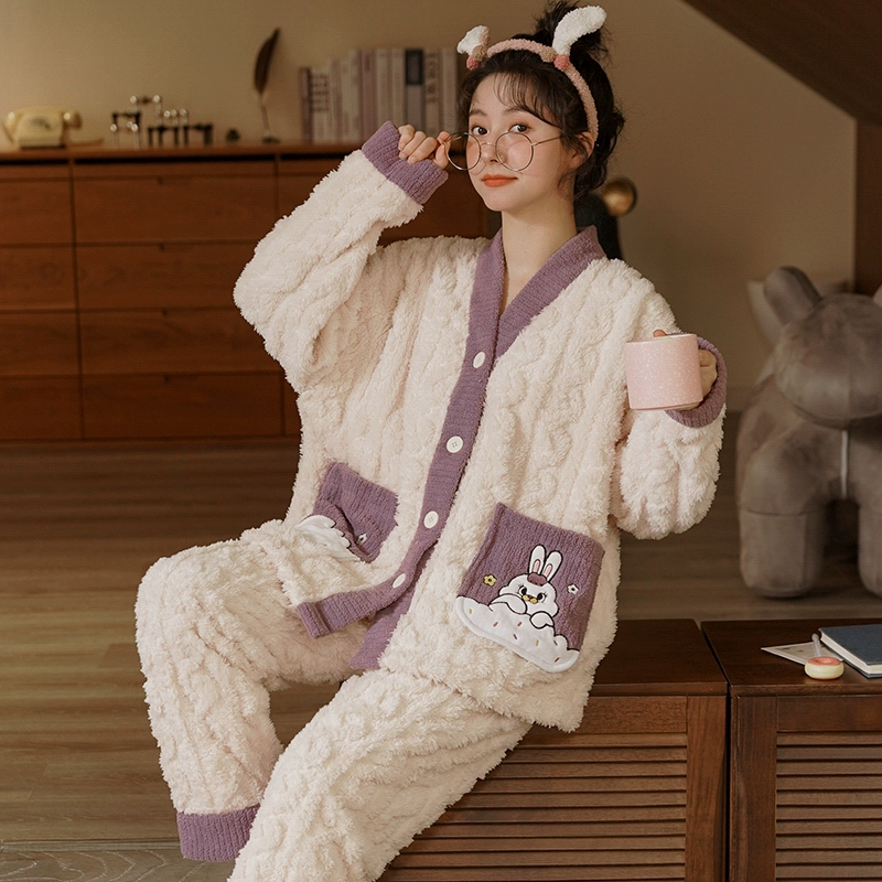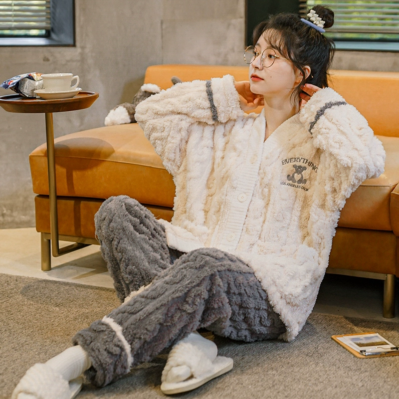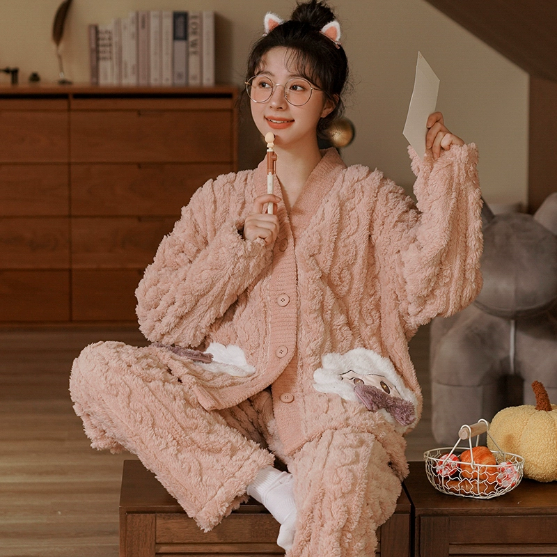 | nameOriginal | Winter coral velvet pajamas for women plus velvet and thickened flannel casual wearable home clothes two-piece suit autumn and winter |