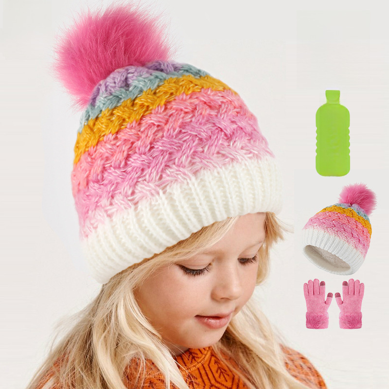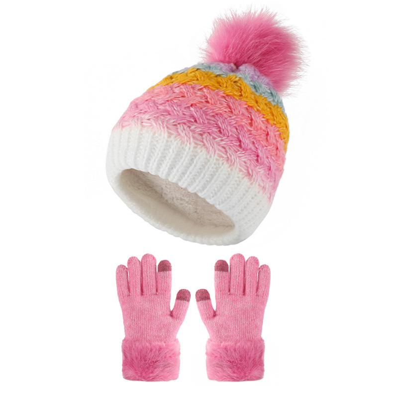 | nameOriginal | Winter CUHK children's knitted fur ball hat gloves two-piece suit color gradient plus velvet warm hat two-piece suit |