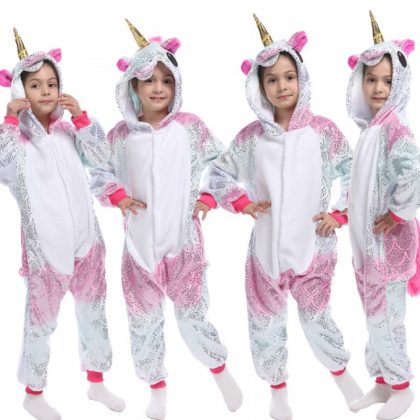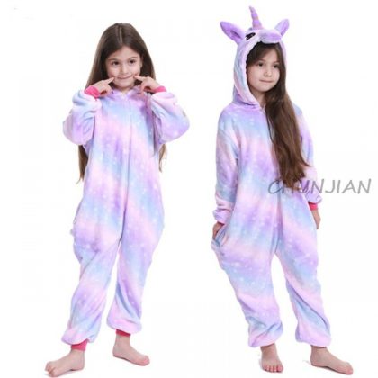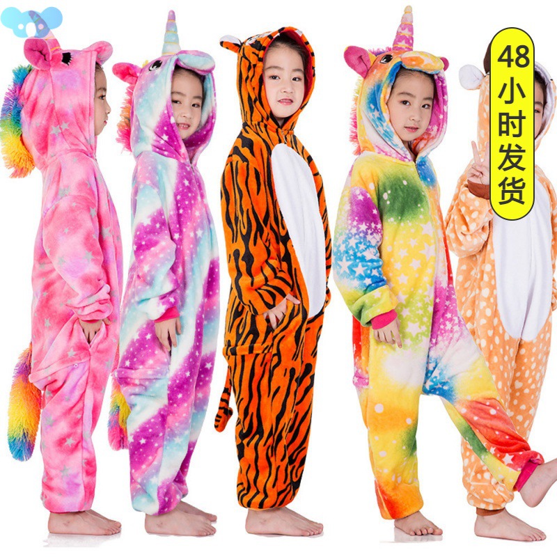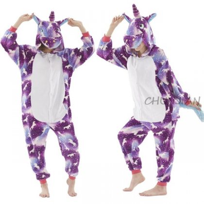 Winter Flannel Soft Warm Unicorn Kigurumi Pajamas Hooded Ani