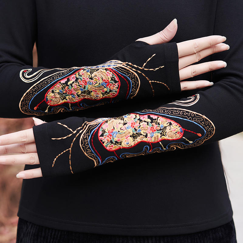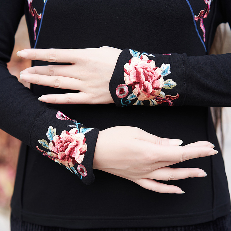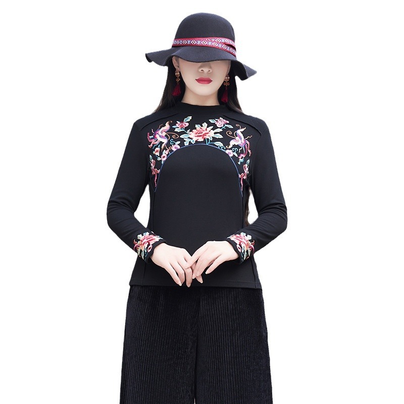 | nameOriginal | Winter fleece-lined embroidered bottoming shirt ethnic style slim elastic half turtleneck warm thickened retro bottoming top |