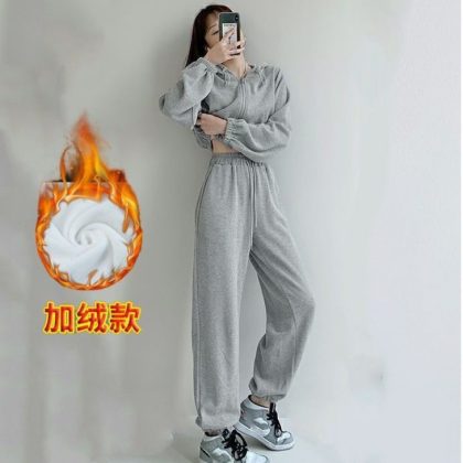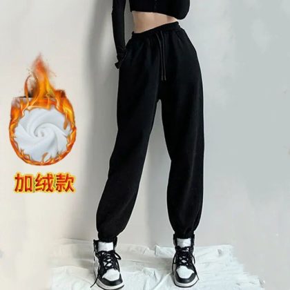 | nameOriginal | Winter fleece-lined thickened ankle-tied sports pants for female students plus size loose slimming harem pants High Street casual sweatpants autumn |