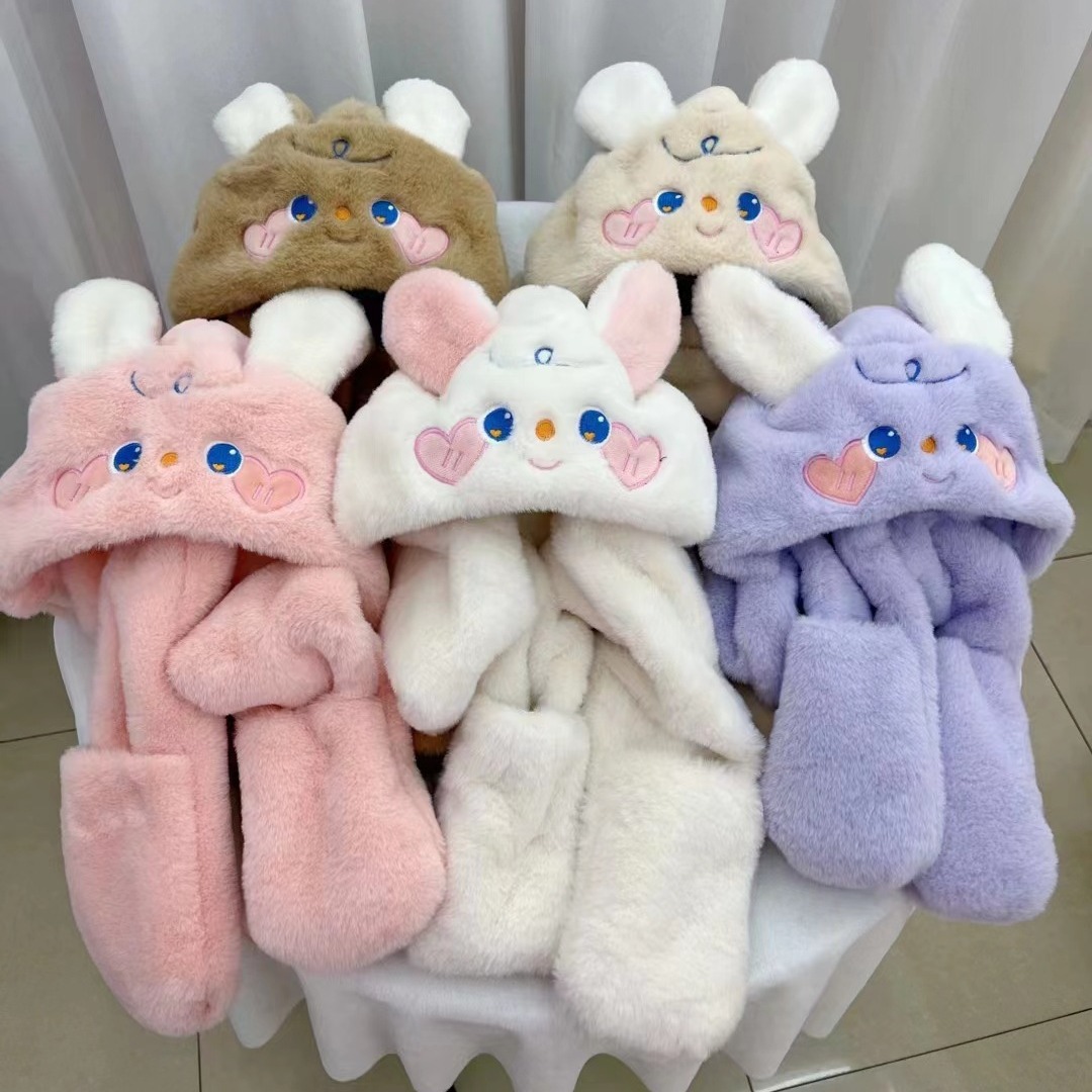 | nameOriginal | Winter fleece-lined thickened children's warm earmuffs hat scarf gloves integrated Bear rabbit three-piece set for boys and girls |