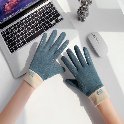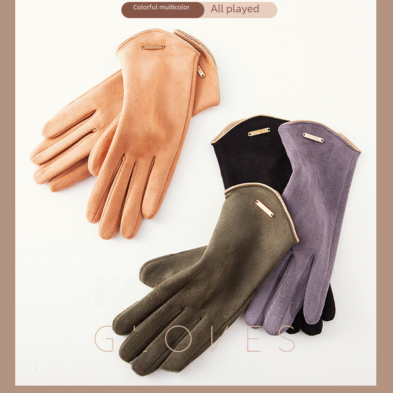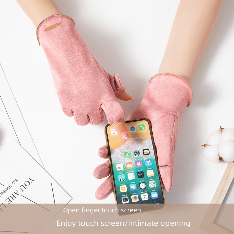 | nameOriginal | Winter flip touch screen warm gloves riding fleece-lined windproof suede gloves student skiing cycling gloves female |