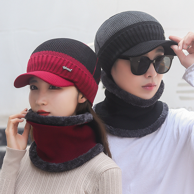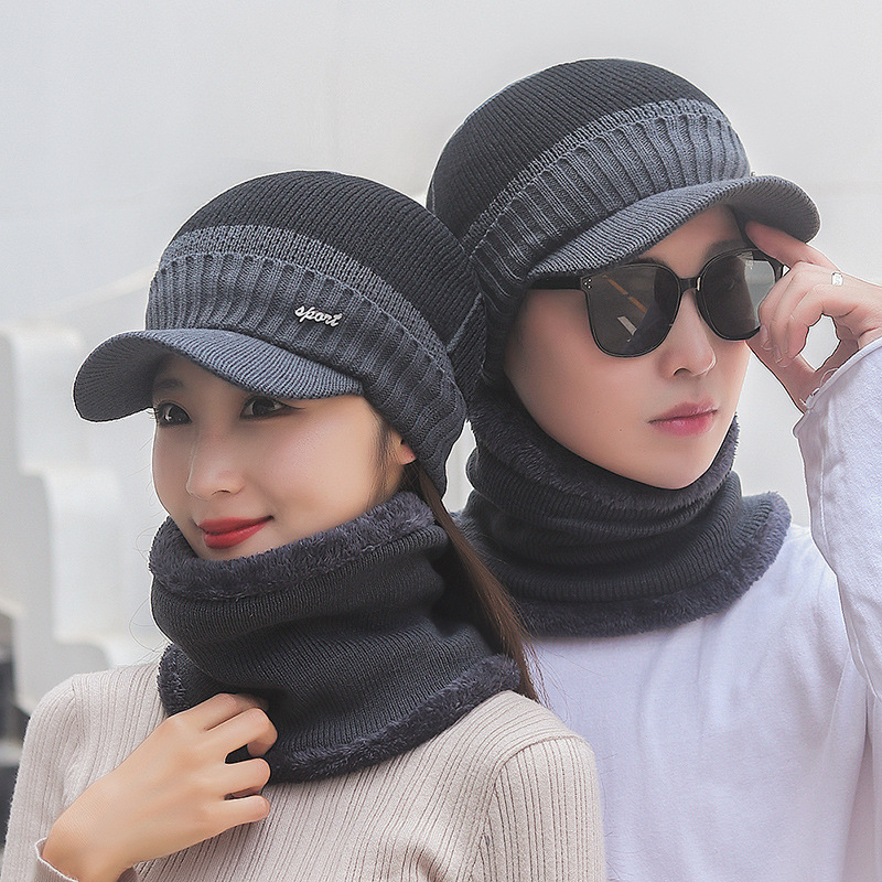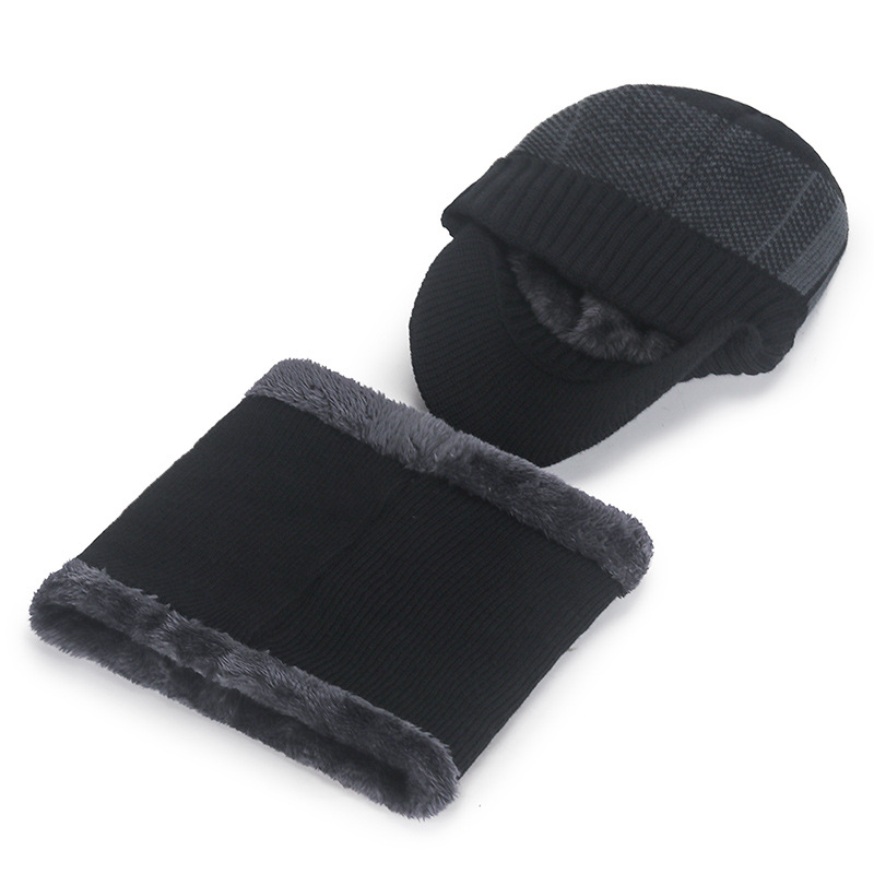 | nameOriginal | Winter hat and scarf two-piece men's outdoor cold-proof knitted cap with velvet collar baseball wool cap |