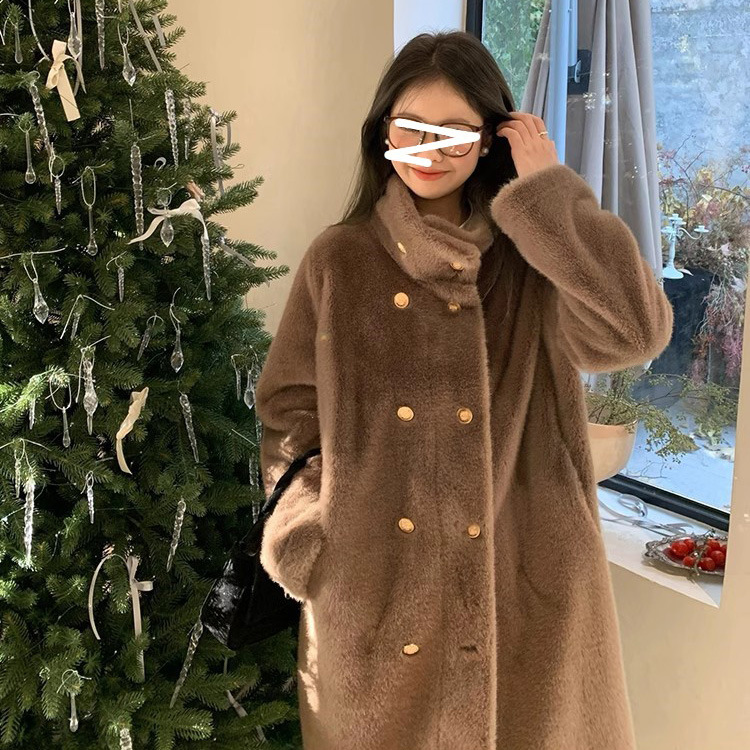 | nameOriginal | [Winter Heater] Double-breasted British-style stand collar imitation mink velvet fur one-piece fur coat women's autumn and winter new |