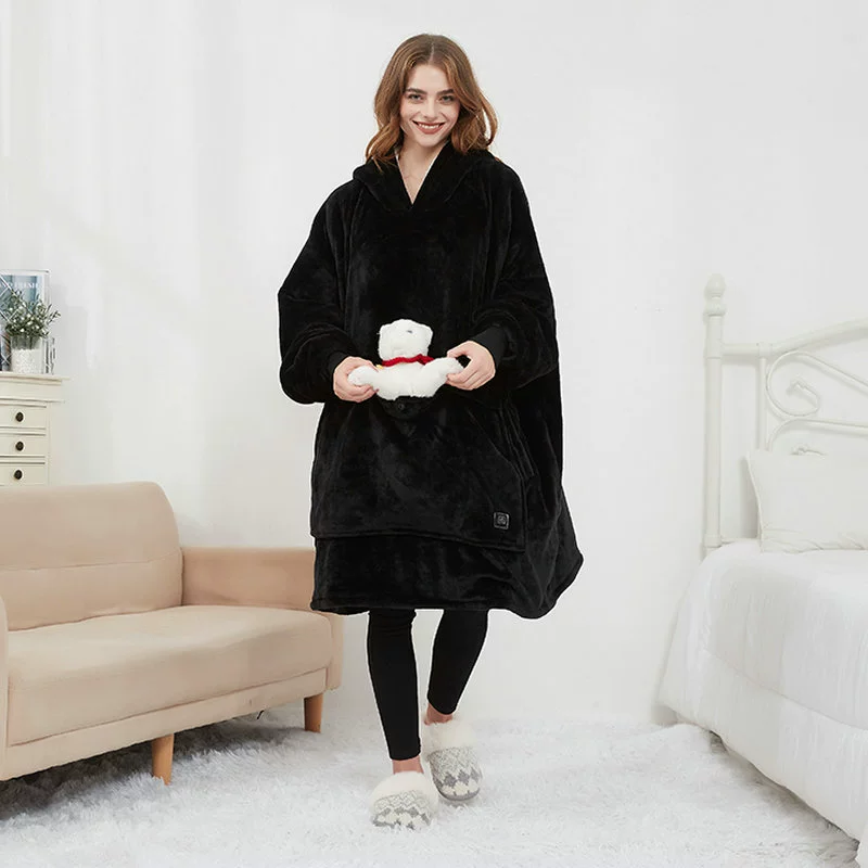 | nameOriginal | Winter heating home clothes large size wearable blanket heated thickened cat hugging hooded lazy blanket USB heated |