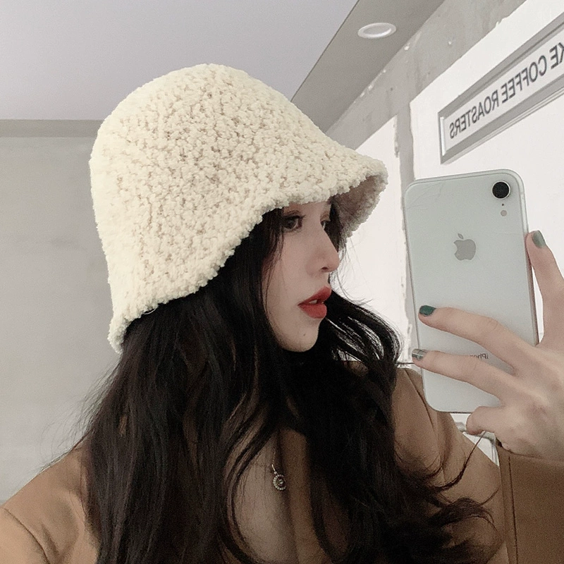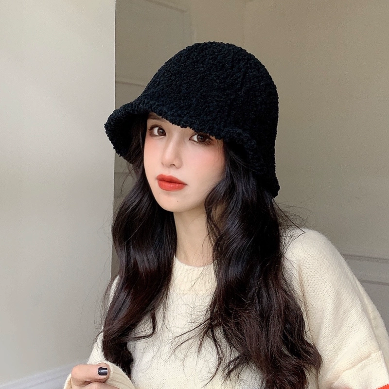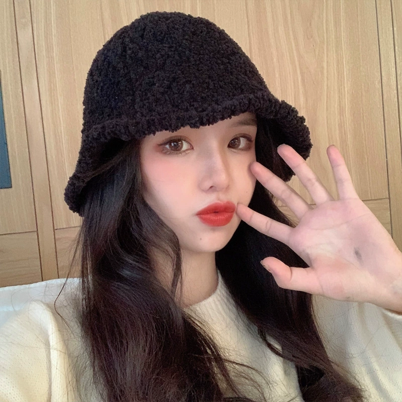 | nameOriginal | Winter knitted fisherman hat for women, lamb fur plush bucket hat, large head circumference, woolen hat, autumn and winter showy face, trendy |