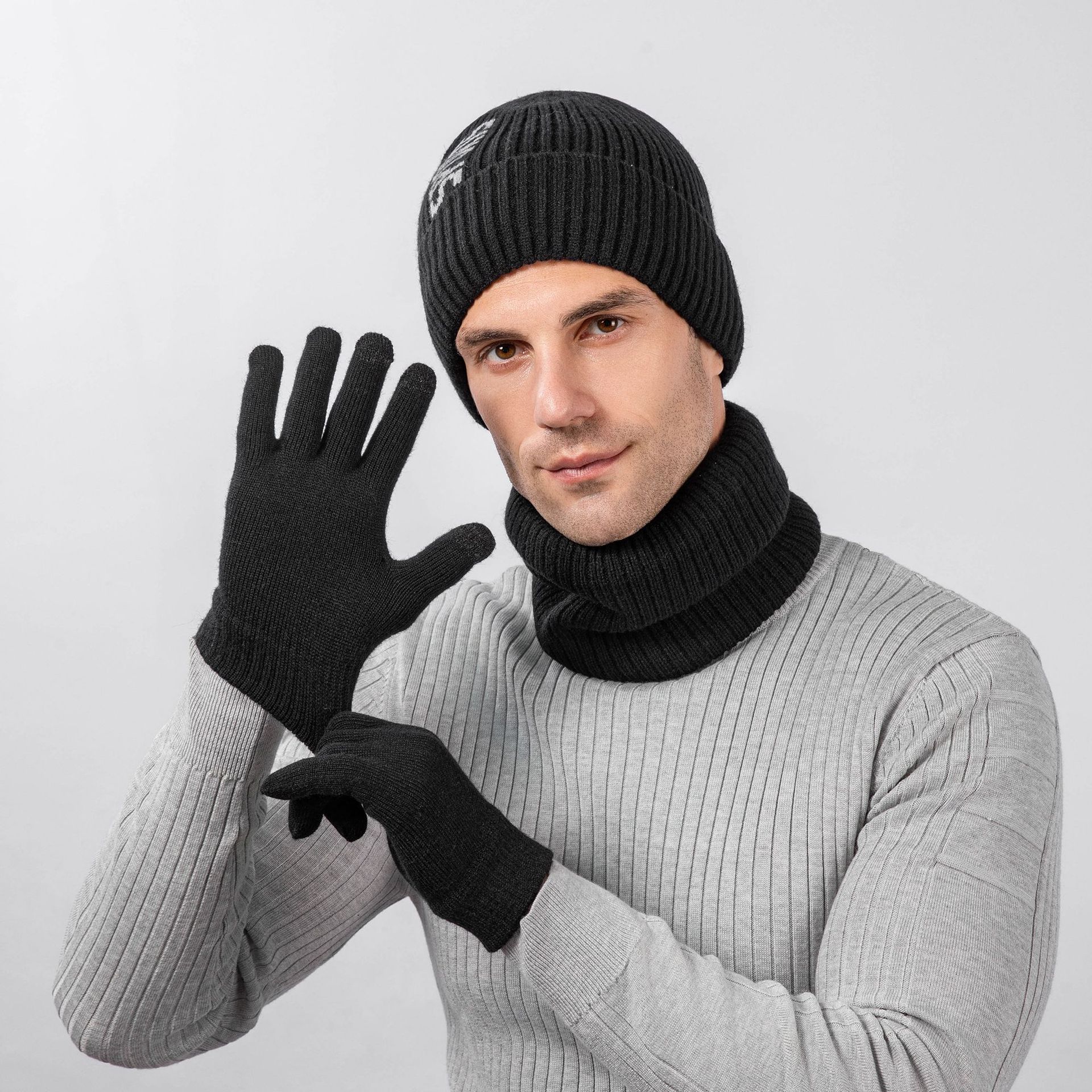 | nameOriginal | Winter leisure sports style wool hat cold hat snow day essential warm knitted hat scarf gloves three-piece set |