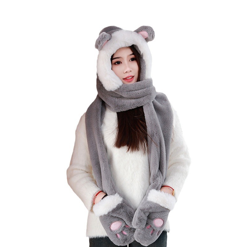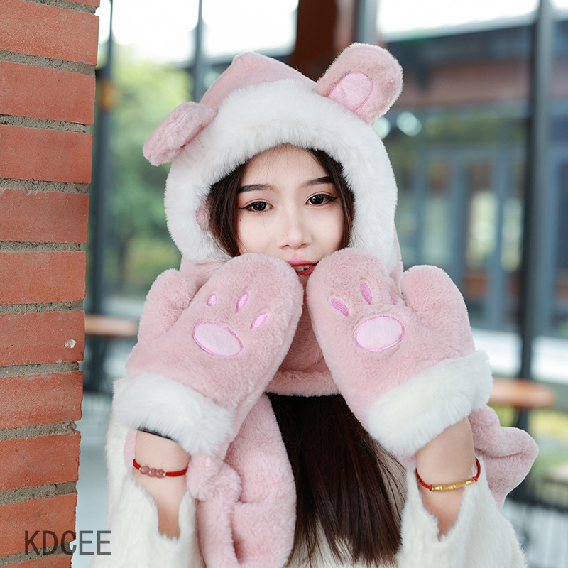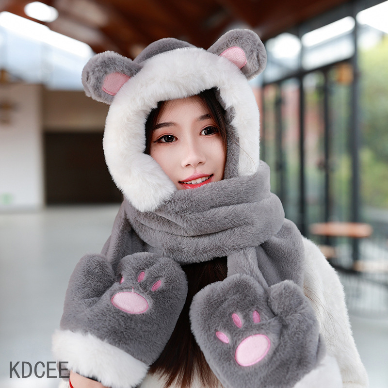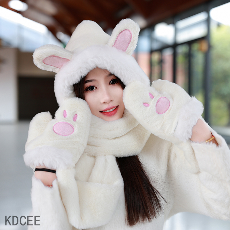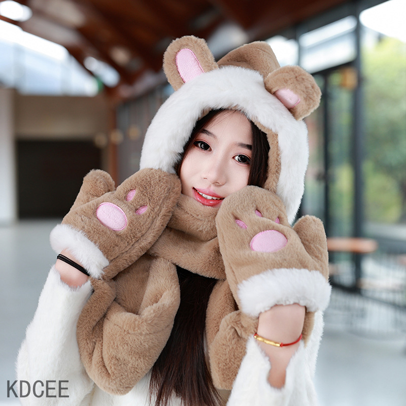 | nameOriginal | Winter Little Bear Rabbit Ears Cute Scarf Gloves One-piece Plush Hat Women's Three-piece Set Warm fleece-lined Scarf |
