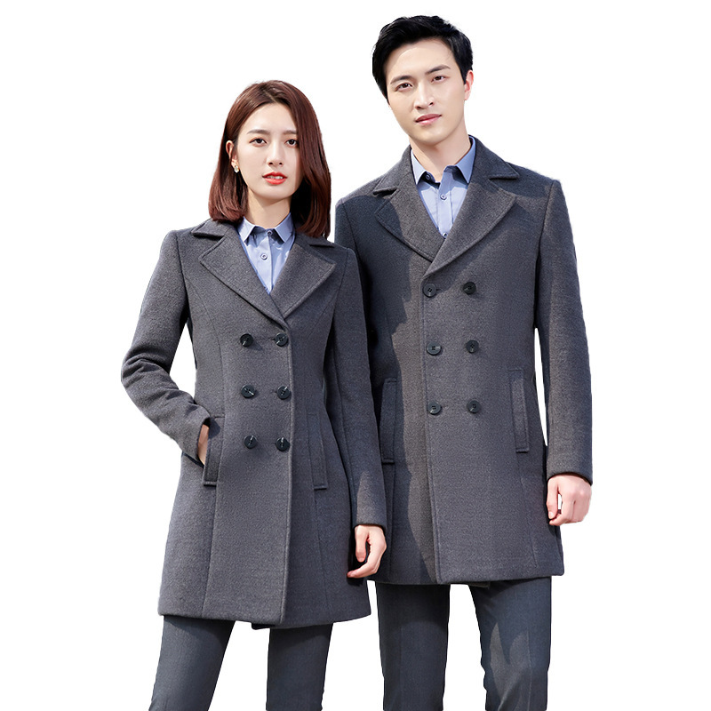 | nameOriginal | Winter men's and women's same black professional suit woolen coat mid-length 4s hotel front desk woolen coat overalls |