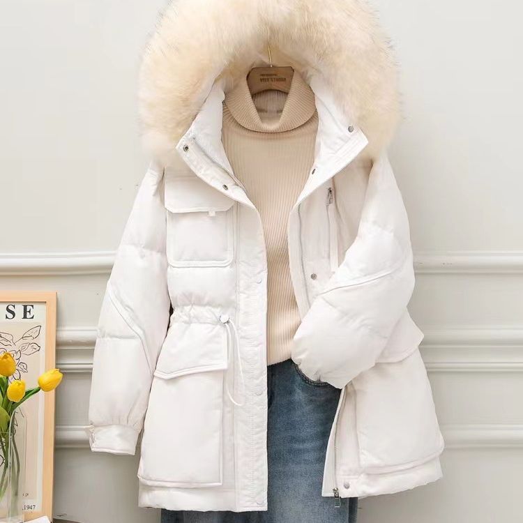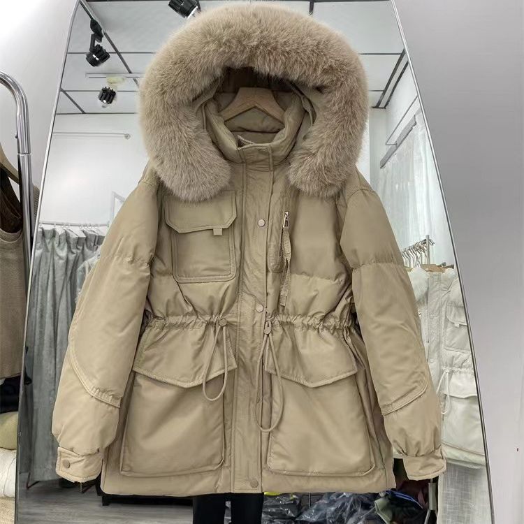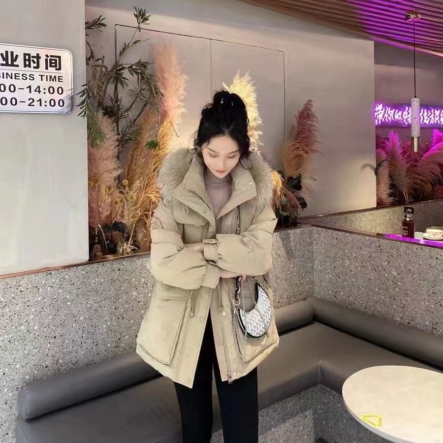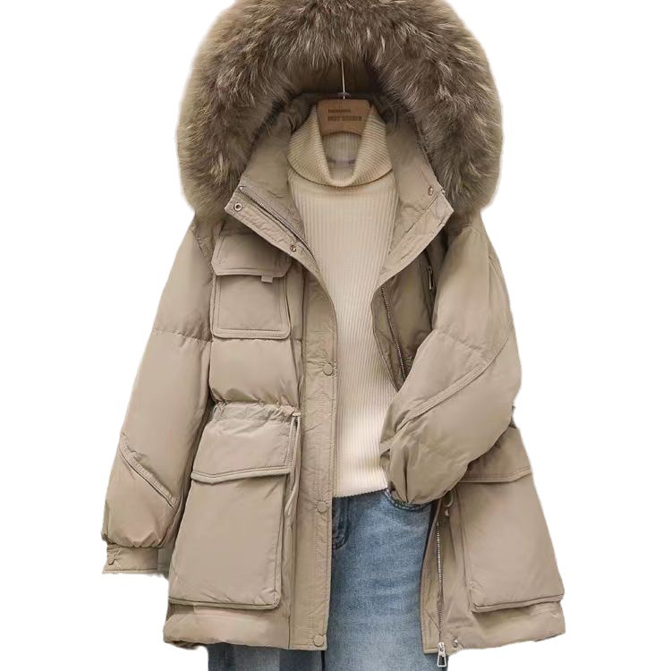 Winter New 2023 Korean Style Real Raccoon Fur Big Fur Collar Down Jacket Women’s Mid-length Slimming Loose Small Pike