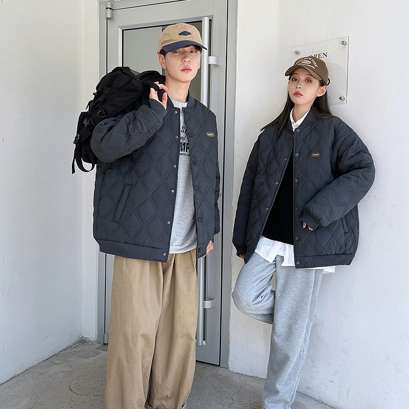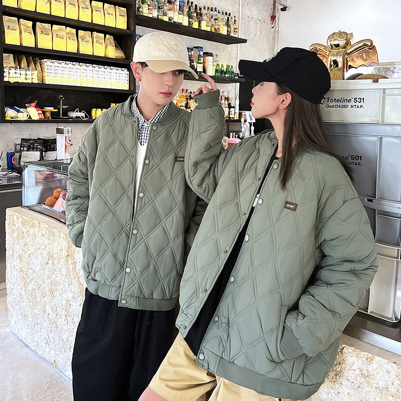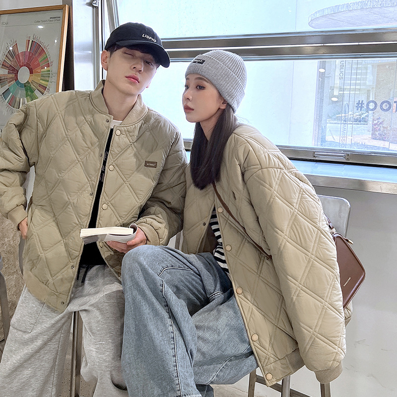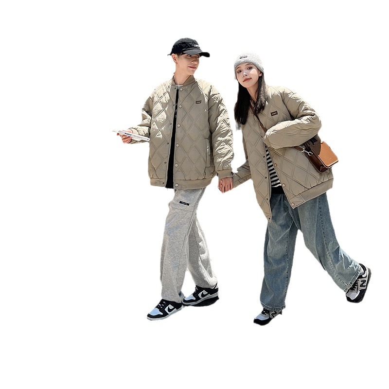 Winter New Arrival Diamond-shaped Plaid Cotton-padded Clothes Couple’s Cotton-padded Jacket Loose College-style Student Ins Trendy Jacket Cotton-padded Coat Jacket