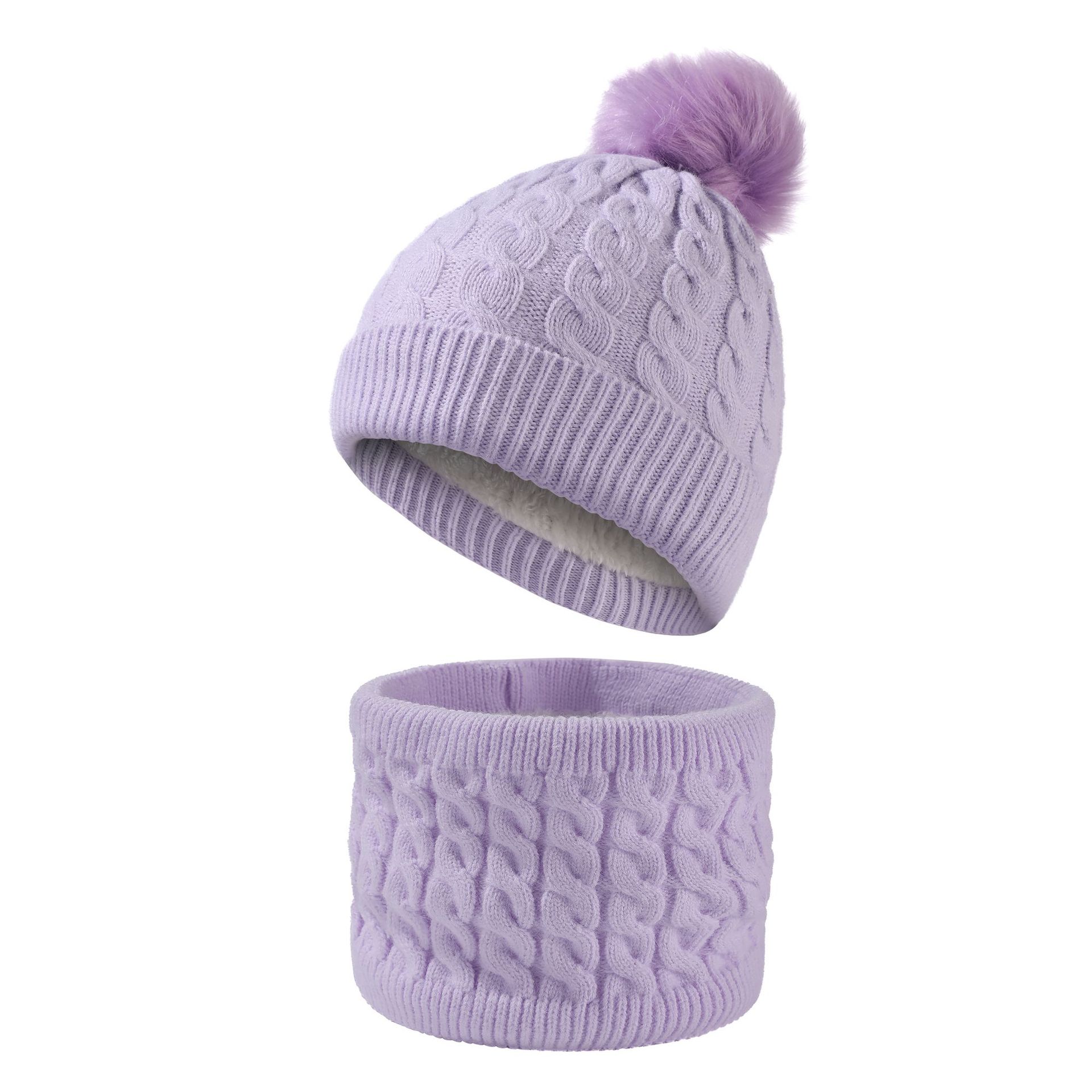 Winter new children’s twist scarf hat gloves three-piece set cute baby’s knitted fleece-lined scarf pullover cap