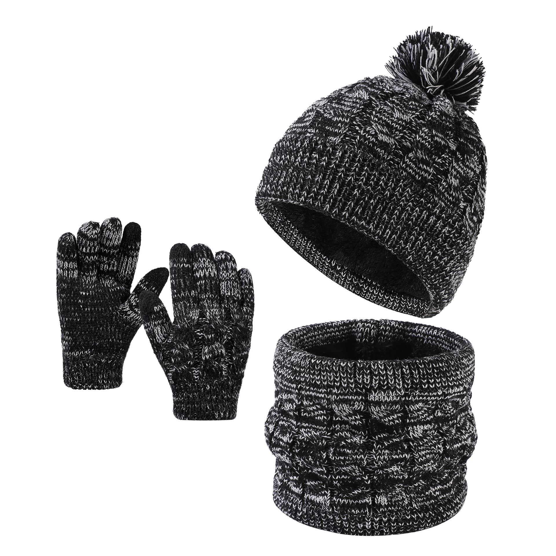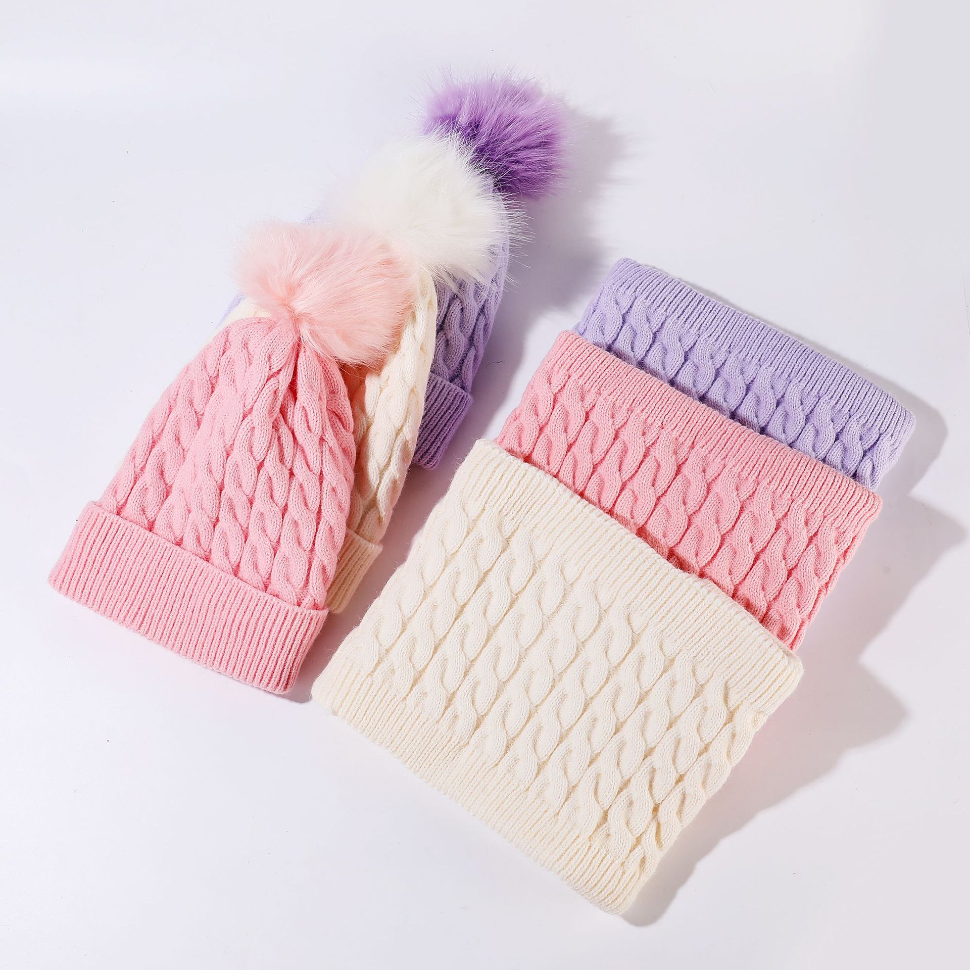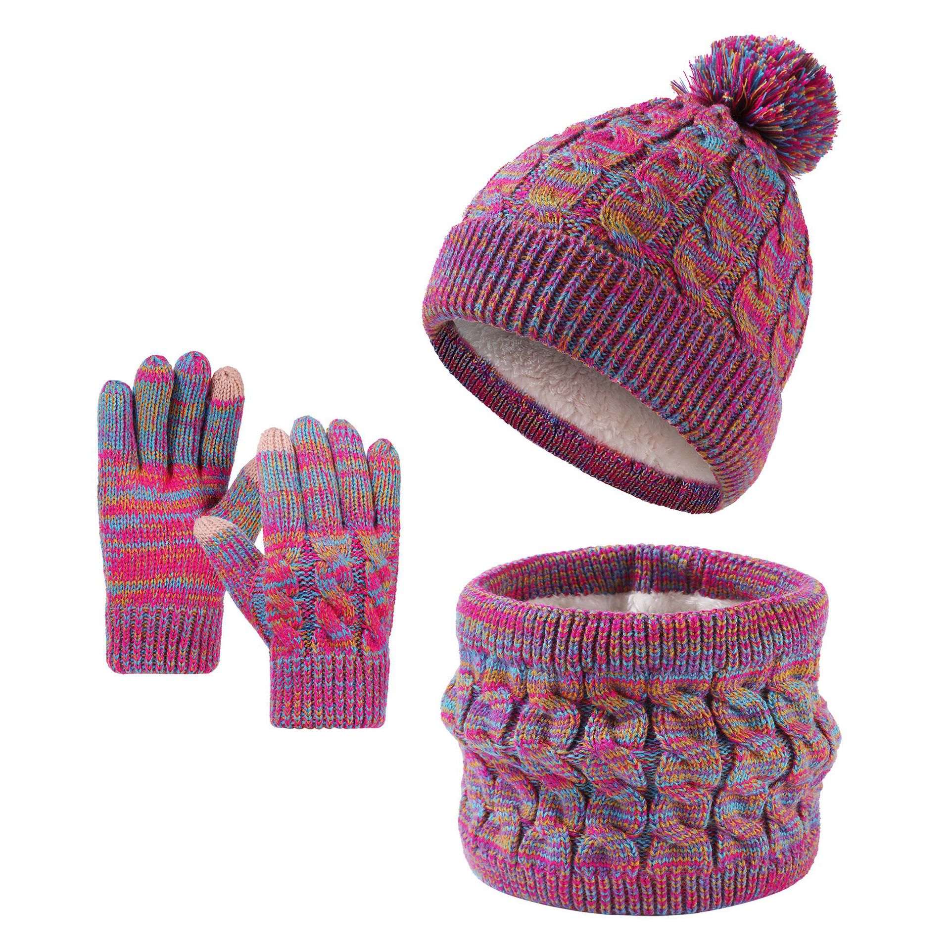 Winter new children's twist scarf hat gloves three-piece set cute baby's knitted fleece-lined scarf pullover cap