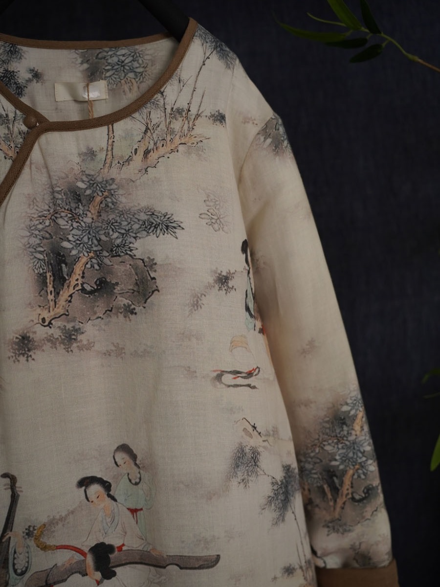 | nameOriginal | Winter new Chinese traditional painting style maid linen printed quilted long cheongsam retro long cotton-padded coat 059 |