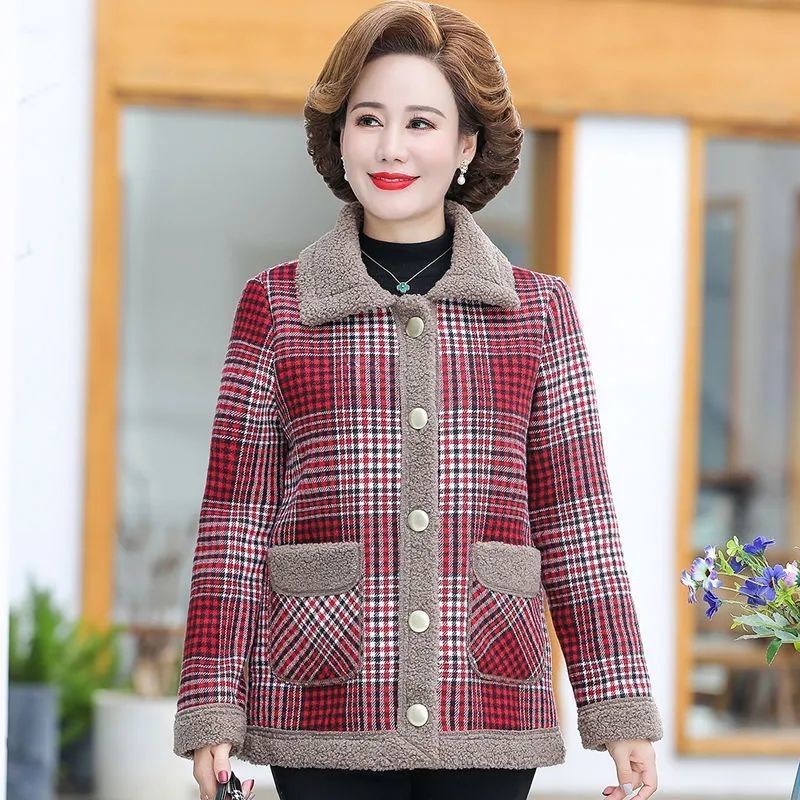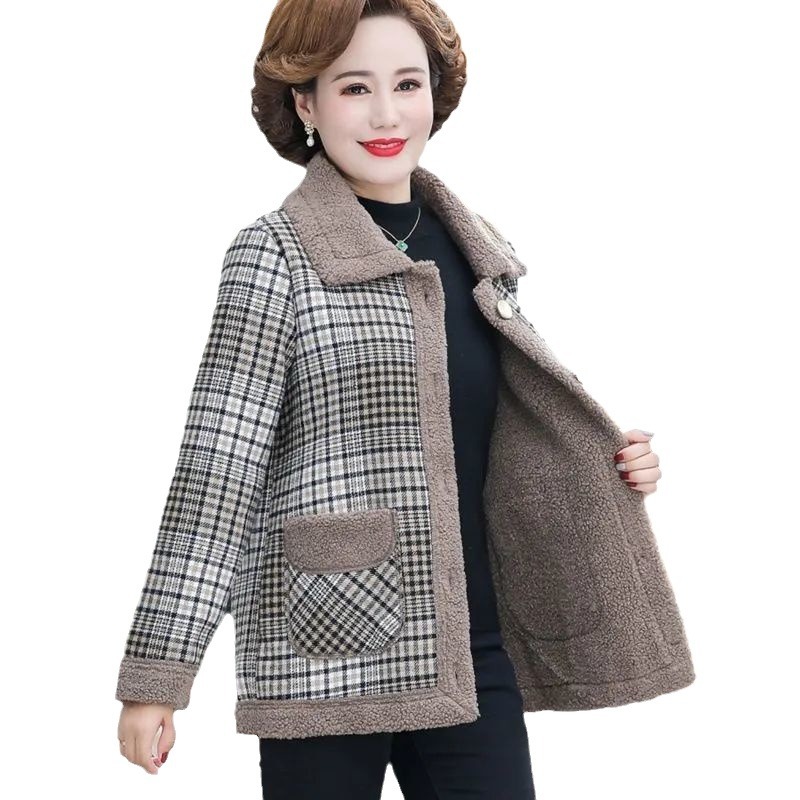 | nameOriginal | Winter new fleece-lined thickened mom's cashmere coat women's middle-aged and elderly loose plus size windbreaker slimming top |