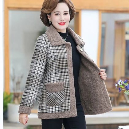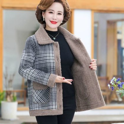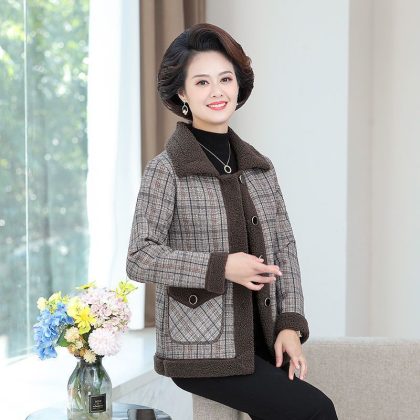 | nameOriginal | Winter new fleece-lined thickened mom's cashmere coat women's middle-aged and elderly loose plus size windbreaker slimming top |