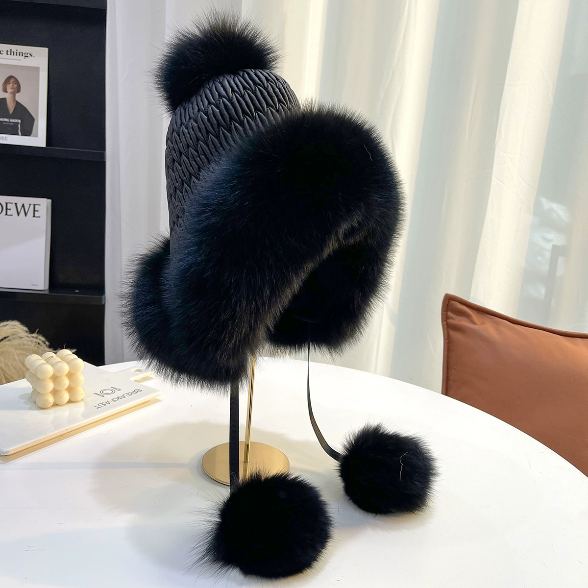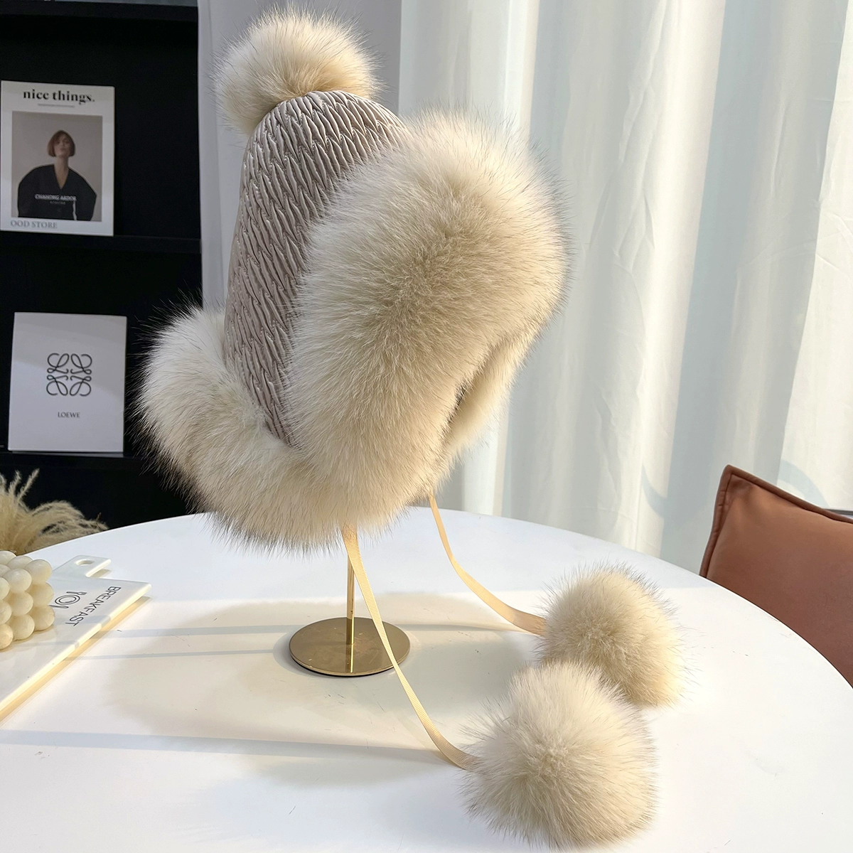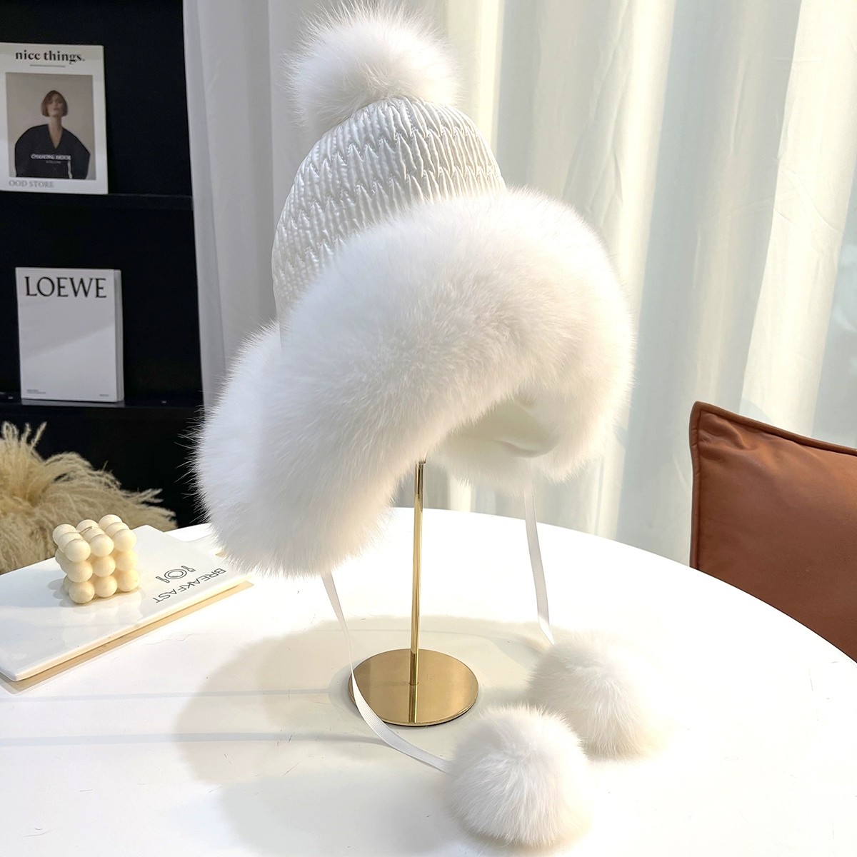 | nameOriginal | Winter new fox fur hat Lei Feng hat wool sweet and cute plus velvet warm ear protection women's hat real wool |