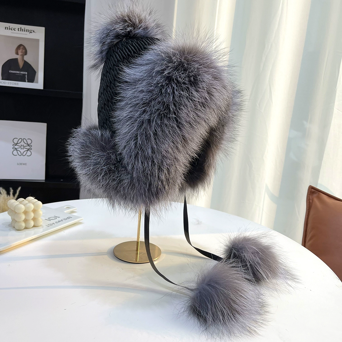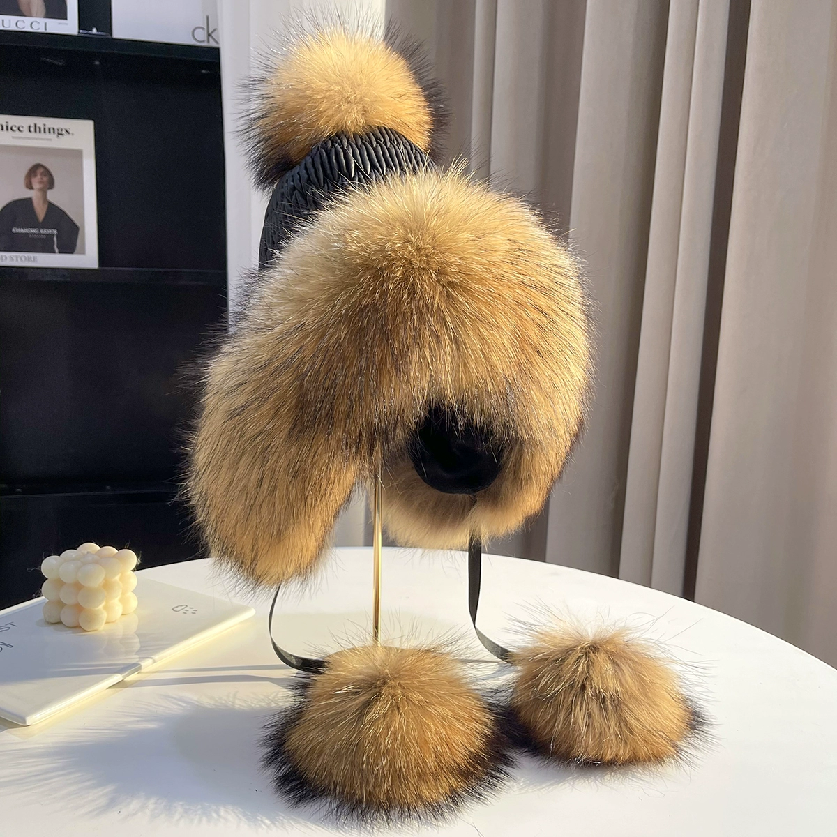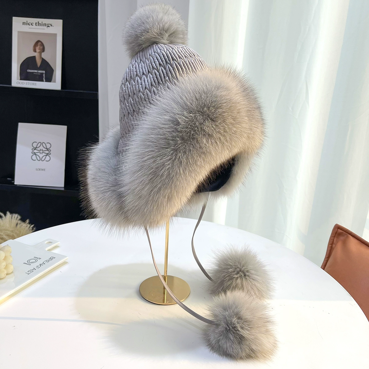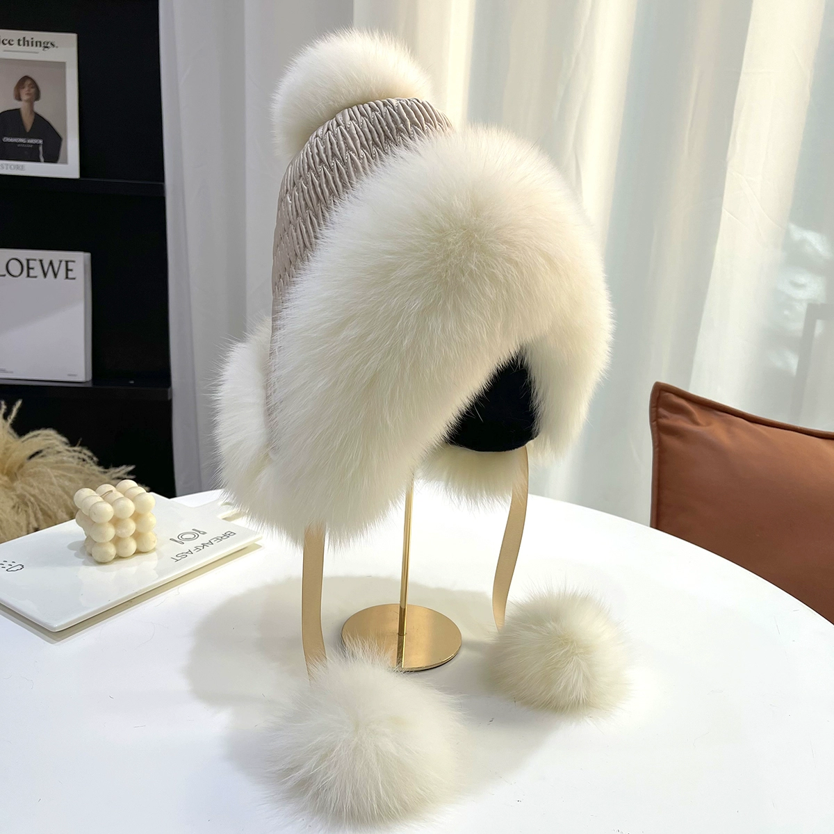 | nameOriginal | Winter new fox fur hat Lei Feng hat wool sweet and cute plus velvet warm ear protection women's hat real wool |