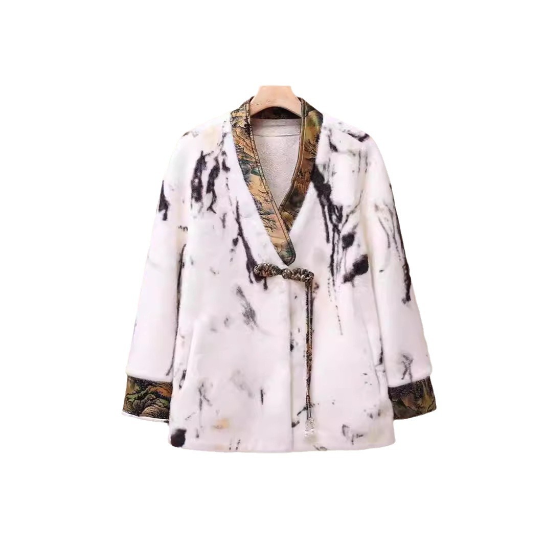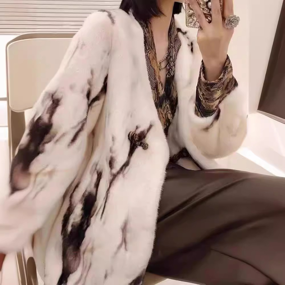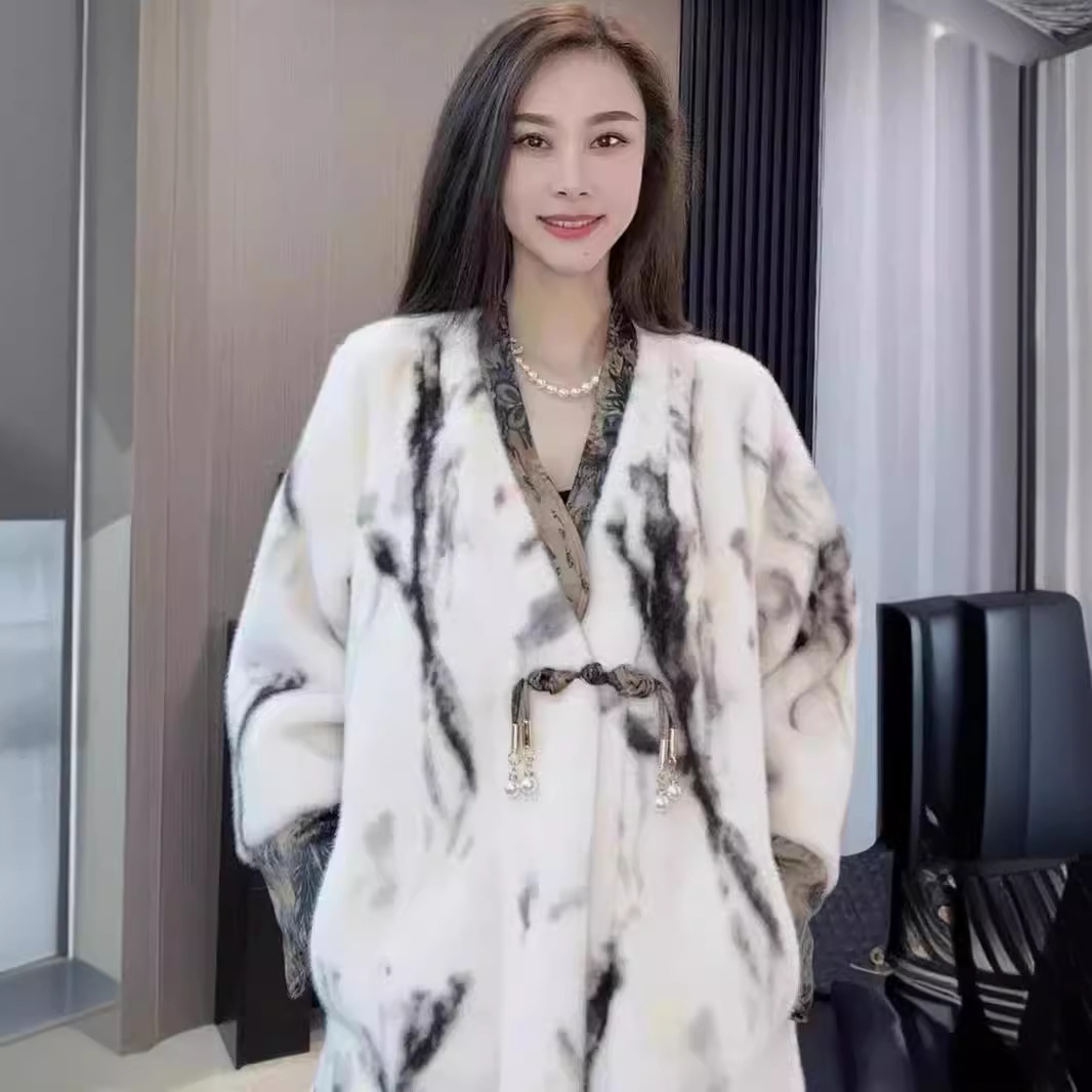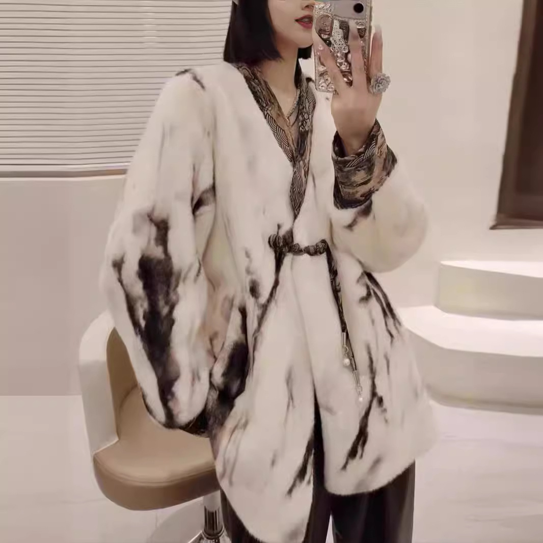 | nameOriginal | Winter New Ink Painting Fur One Imitation Mink Fur Coat Women's V-Neck New Chinese Style Retro Fur Coat |