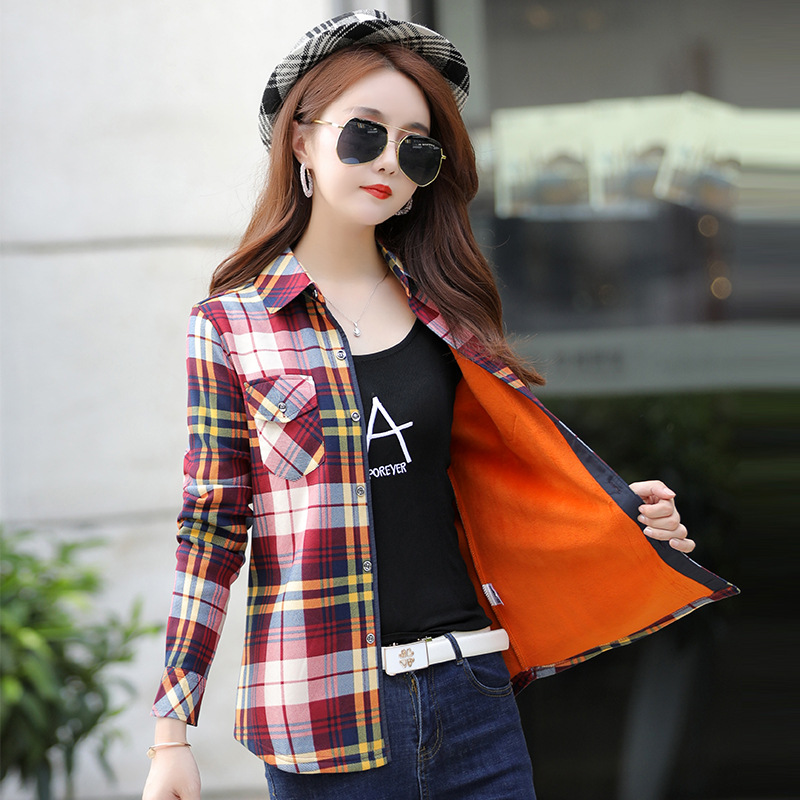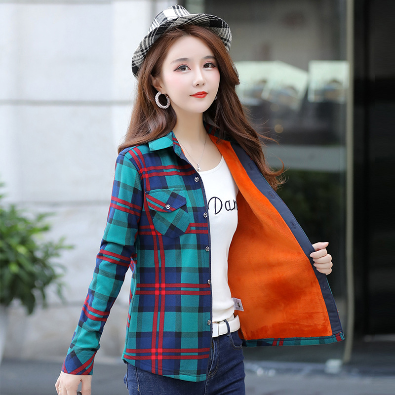 | nameOriginal | Winter New Korean Style Women's Warm Fleece-lined Thickened All-match Plaid Shirt Women's Long-sleeved Warm Shirt One-piece Fleece |