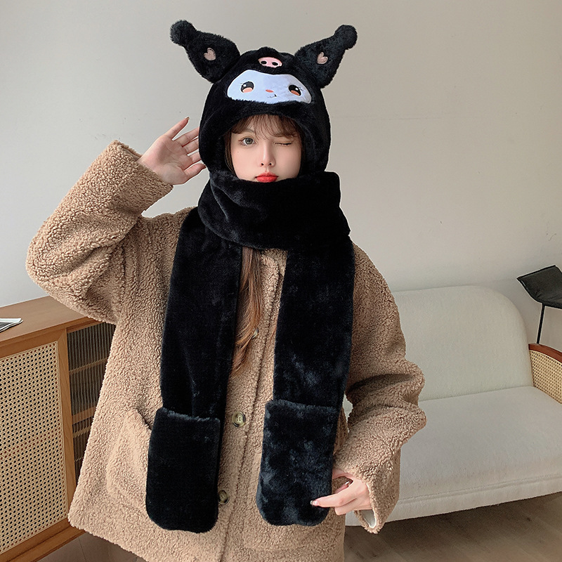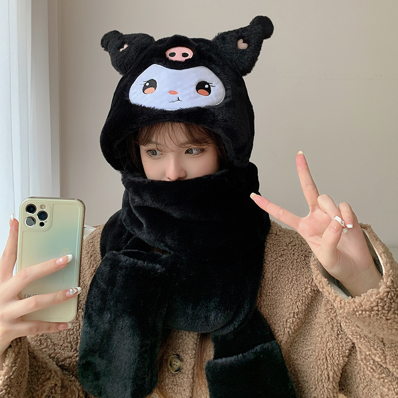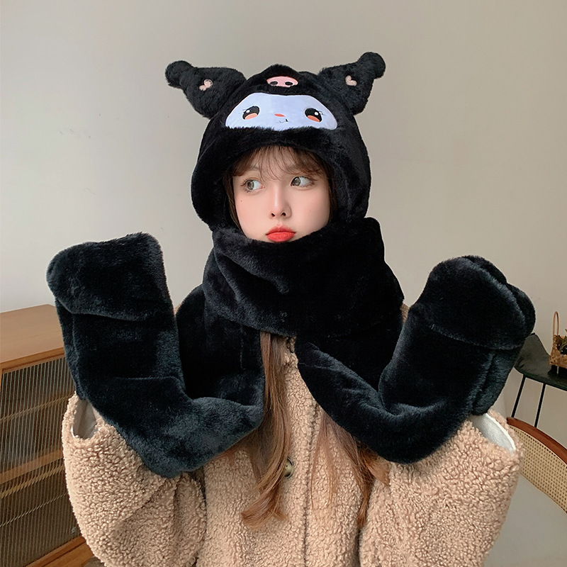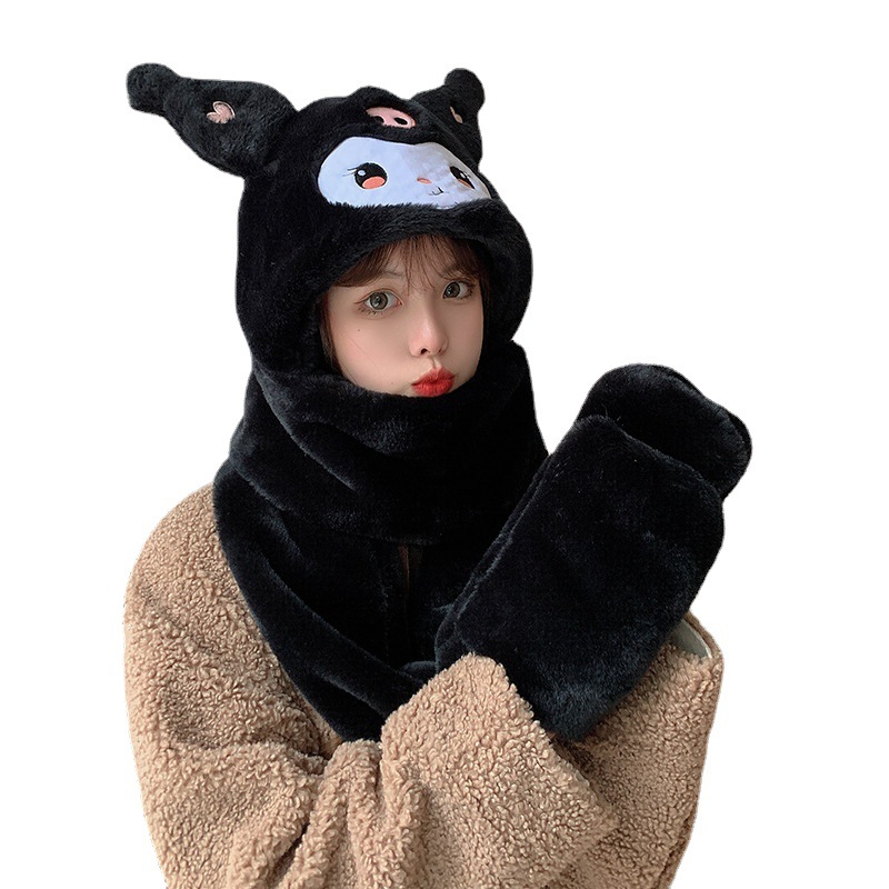 | nameOriginal | Winter new rabbit fur hat scarf gloves three-piece set Korean cute Kumi plus velvet warm ear protection wind-proof cap |