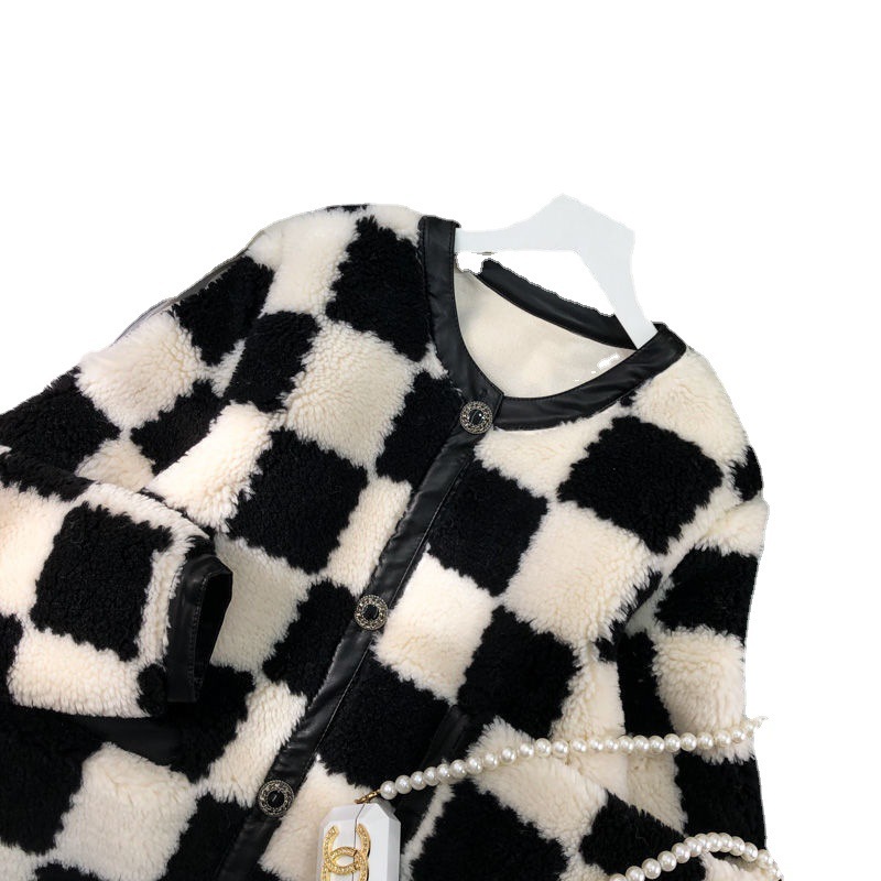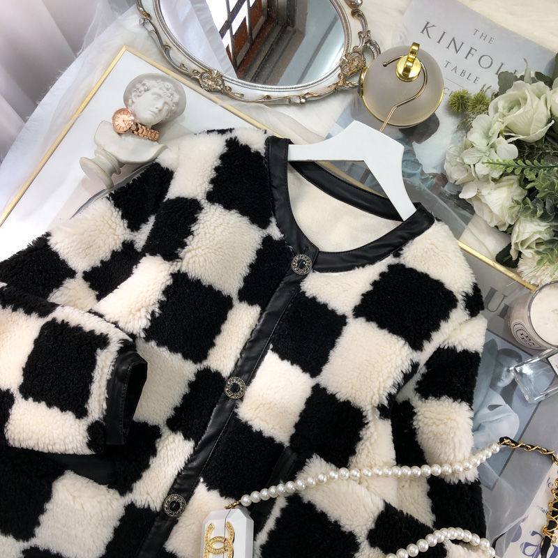 | nameOriginal | Winter New Style Chanel Style Western Style Age-reducing Checkerboard Lambswool Coat Women's Plush Cardigan Women's Top Yx |