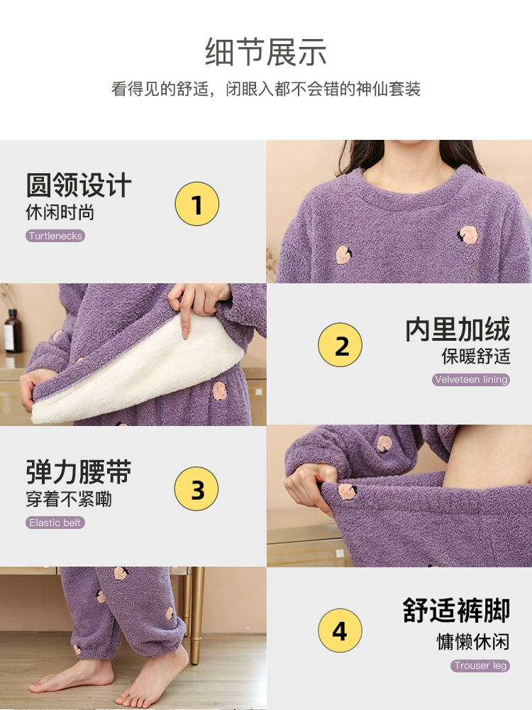 | nameOriginal | Winter pajamas for women 2024 new velvet thickened flannel coral velvet autumn and winter warm home wear set |