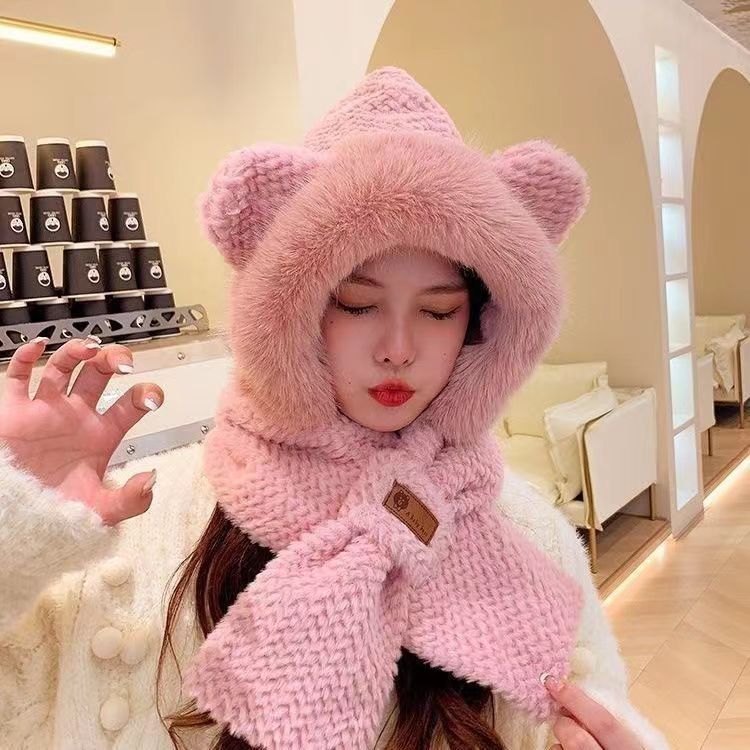 | nameOriginal | Winter Plush Knitted Bear Hat Women's Hat and Scarf Integrated Winter Warm Cold-proof Plush Ear Protection Hat |