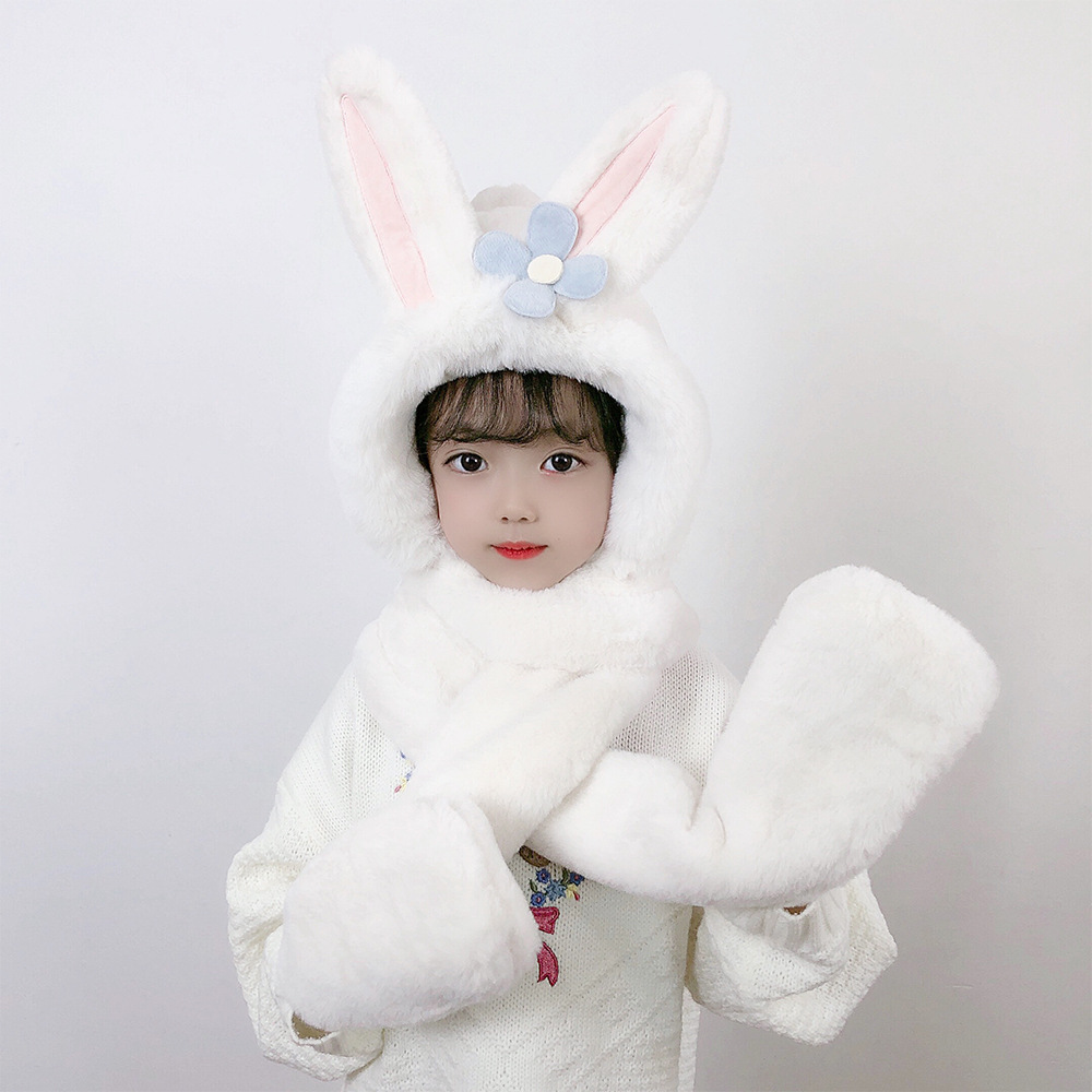 | nameOriginal | Winter popular children's hat scarf gloves integrated hat baby girl cute flower earmuffs children's three-piece set |
