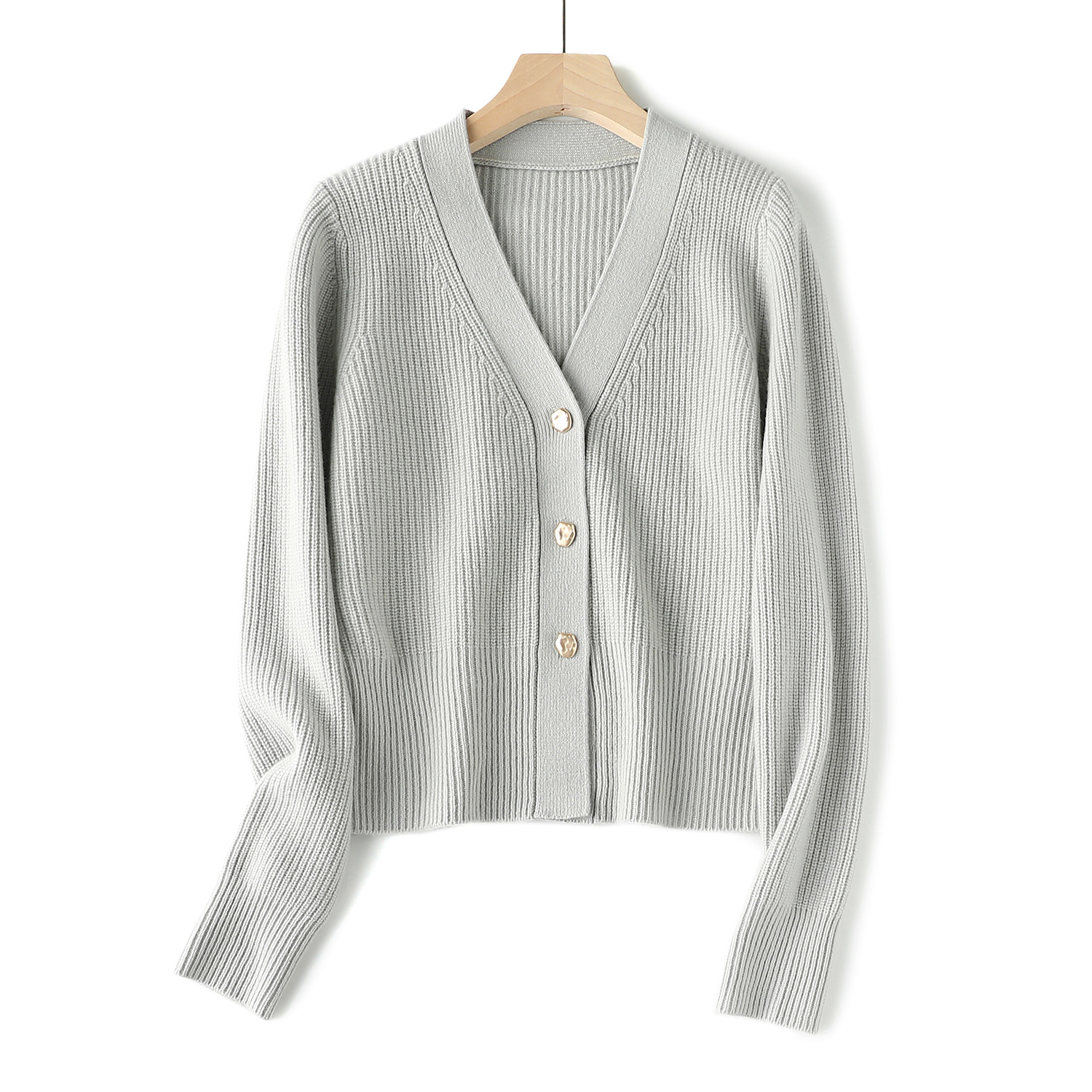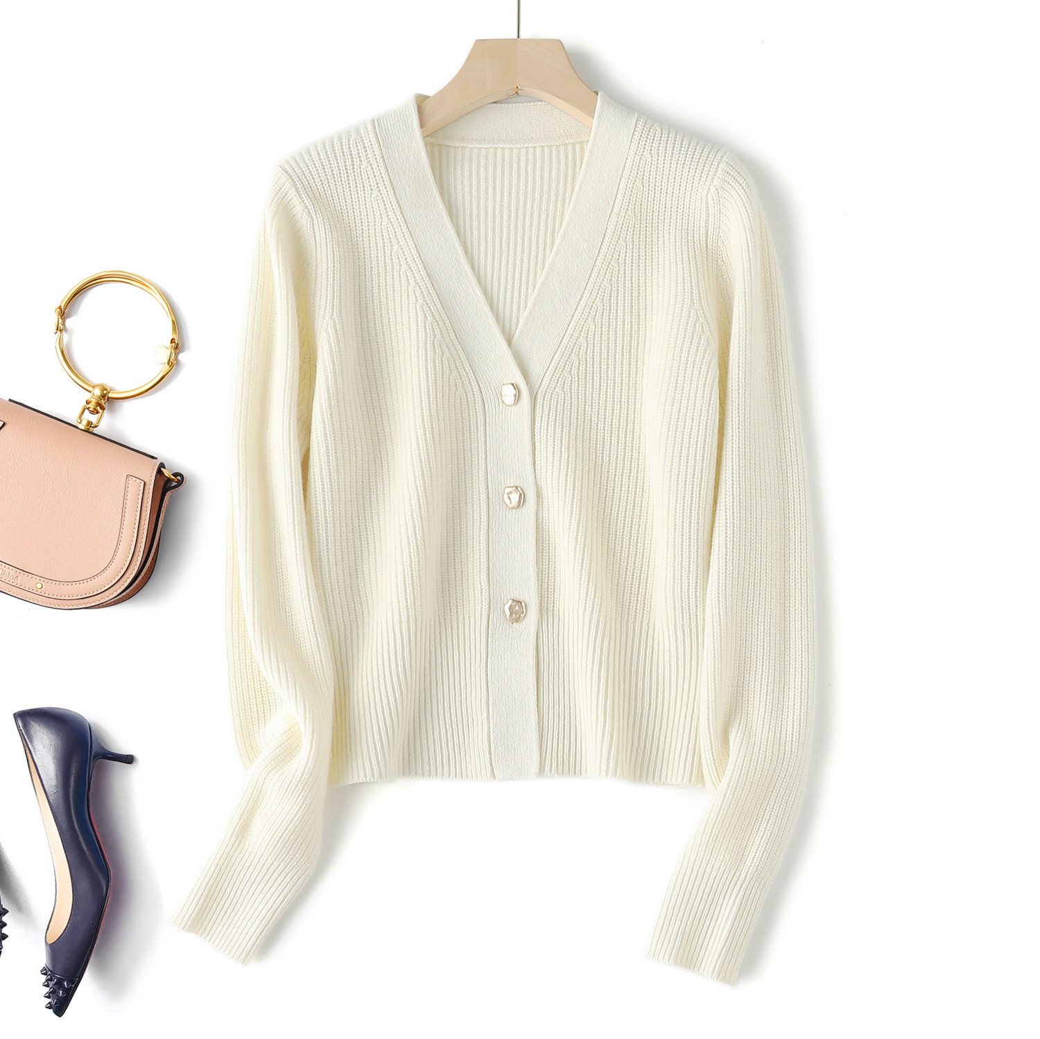Winter snow gentle wind thick woven wool sweater cardigan fashionable all-match slim fit slimming V-neck sweater for women