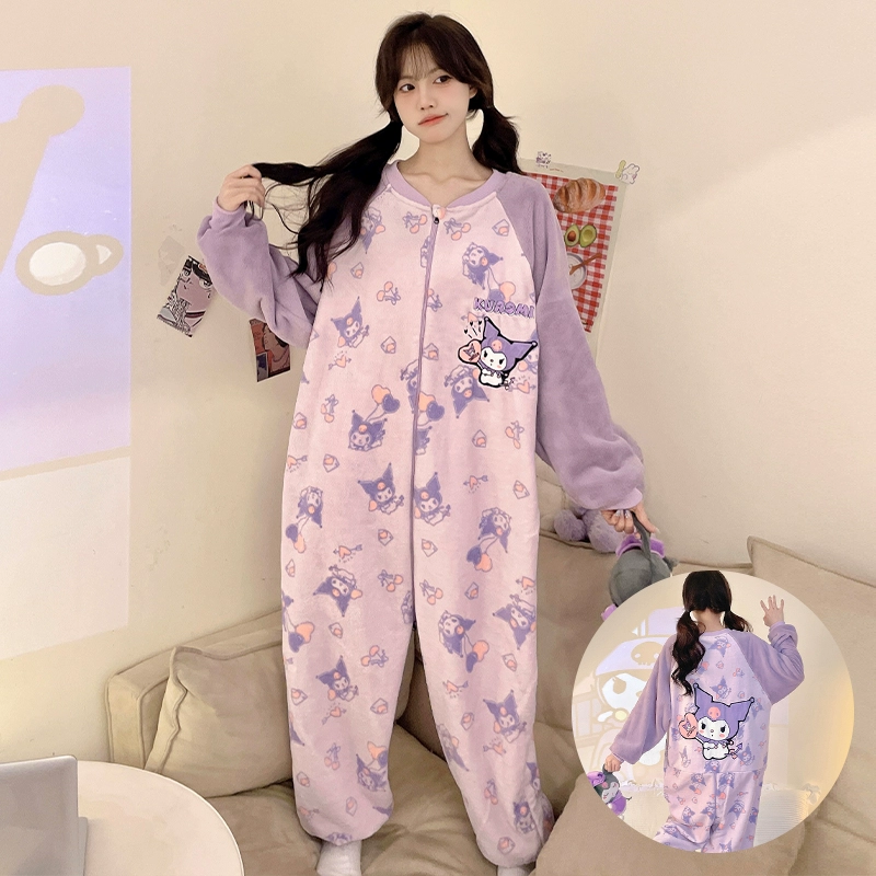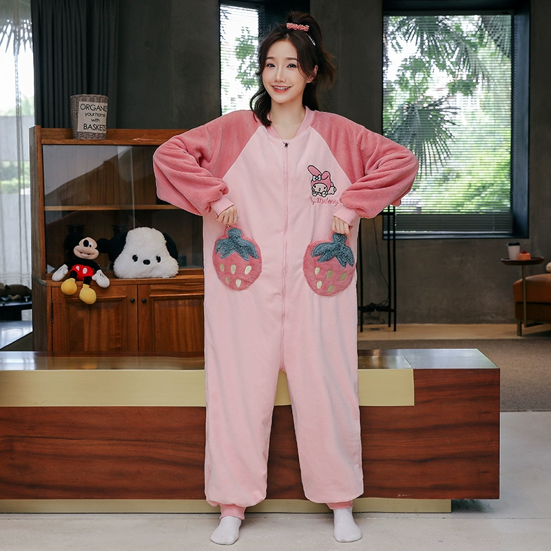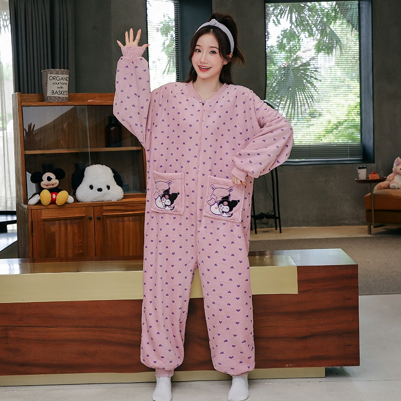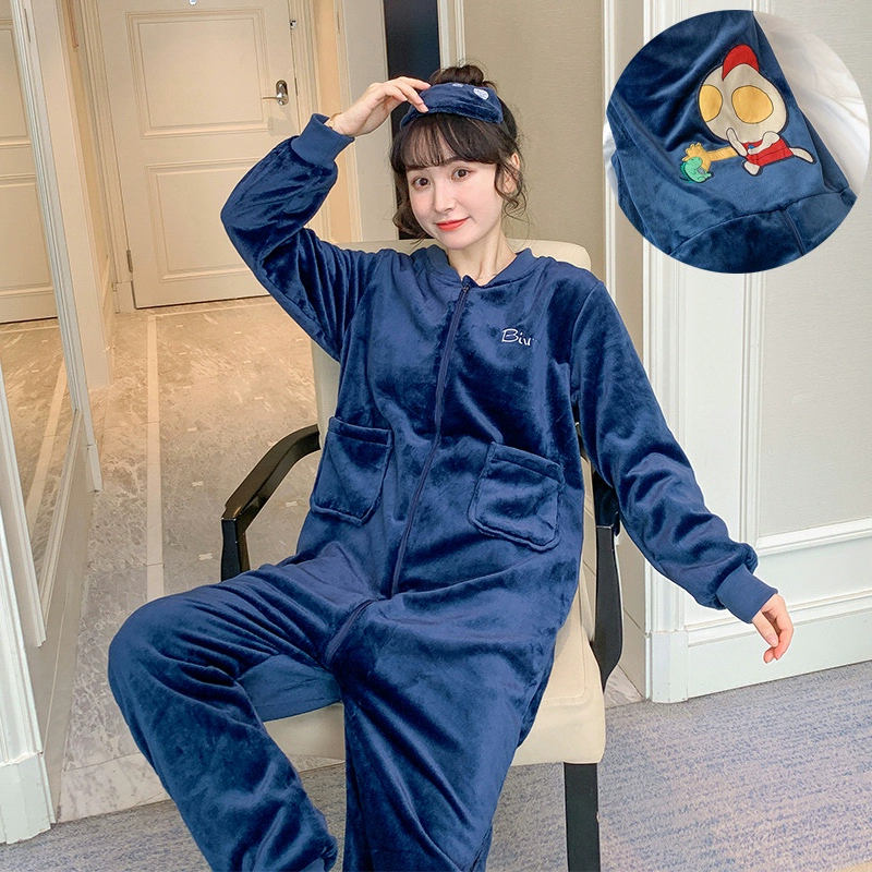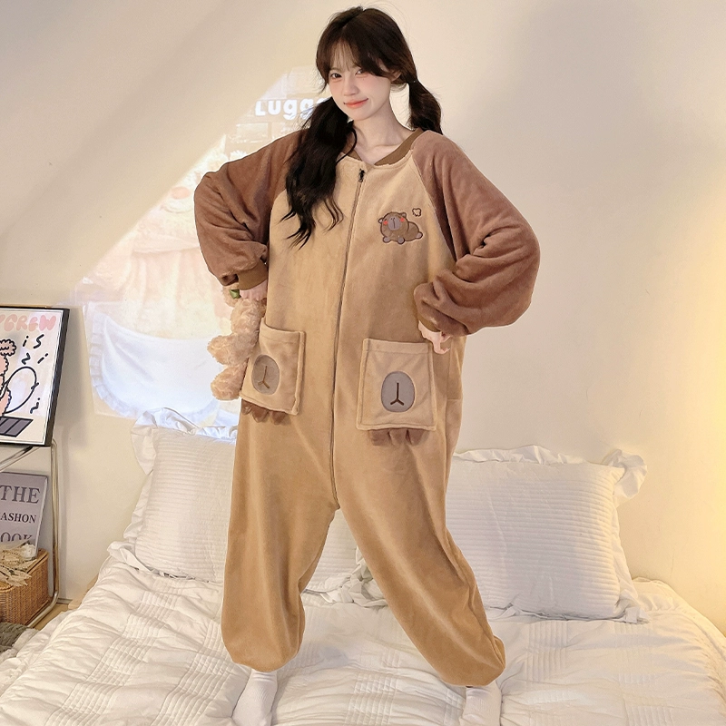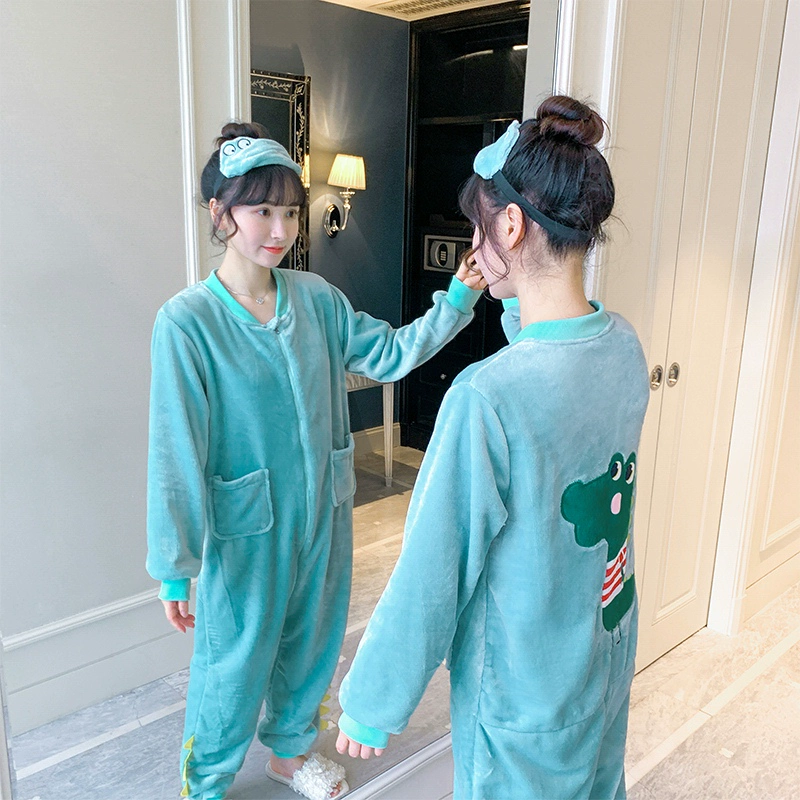 Winter thickened coral velvet one-piece pajamas for women, cute plus velvet to keep warm, autumn and winter flannel home clothes can be worn outside