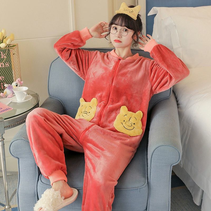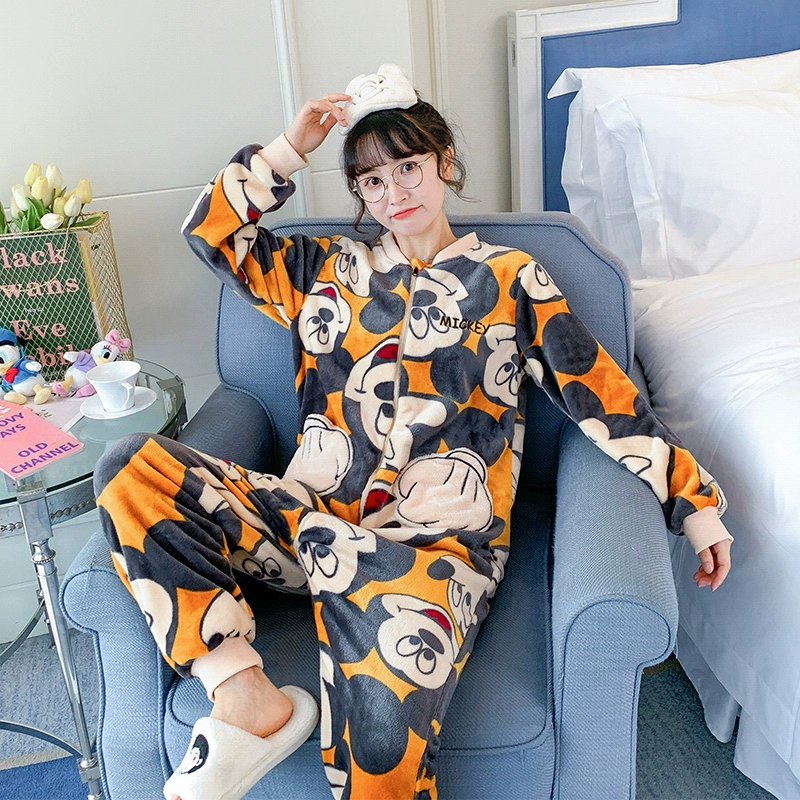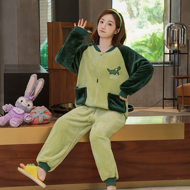 Winter thickened coral velvet, pajamas female cute and warm velvet, warm autumn winter flange home service can be worn outside