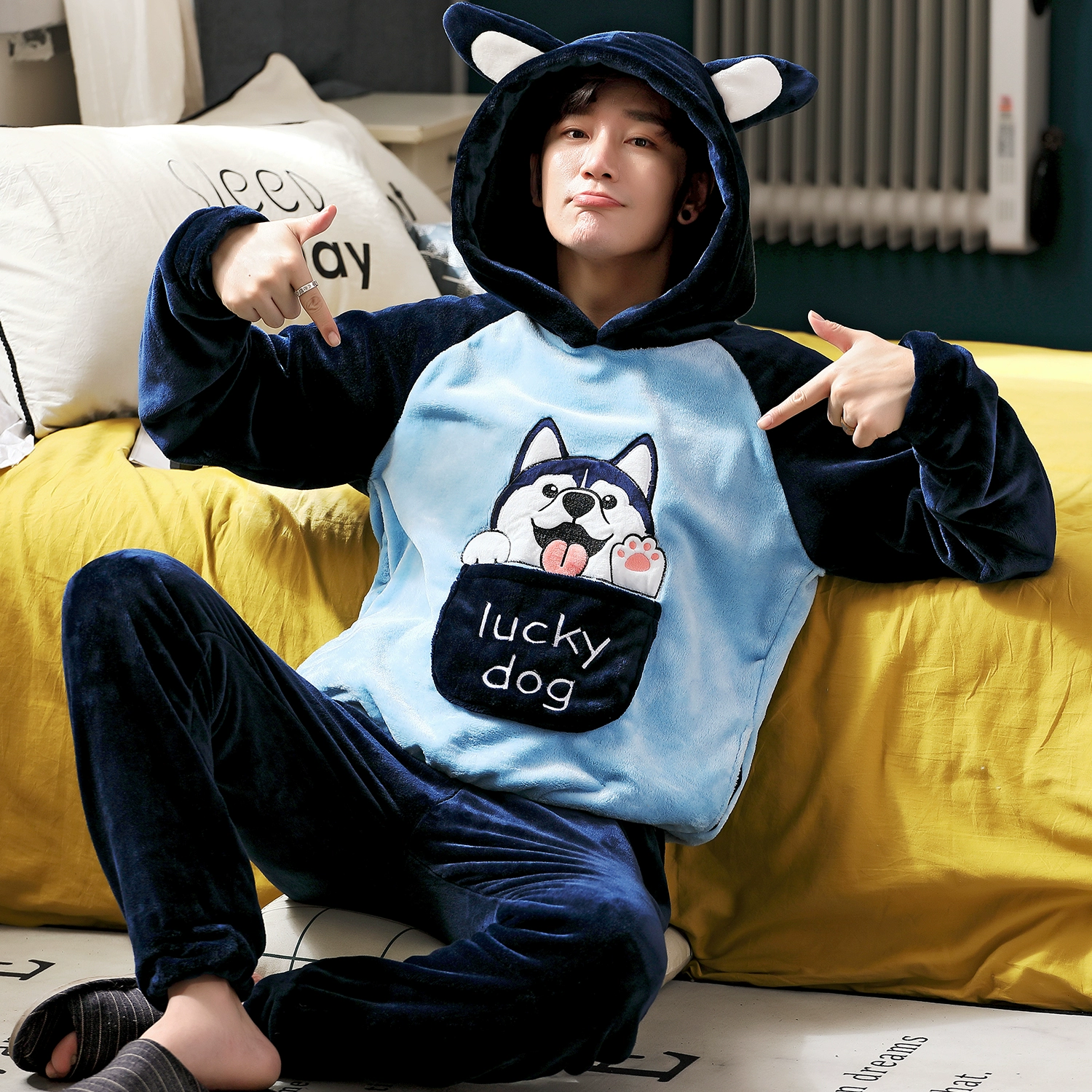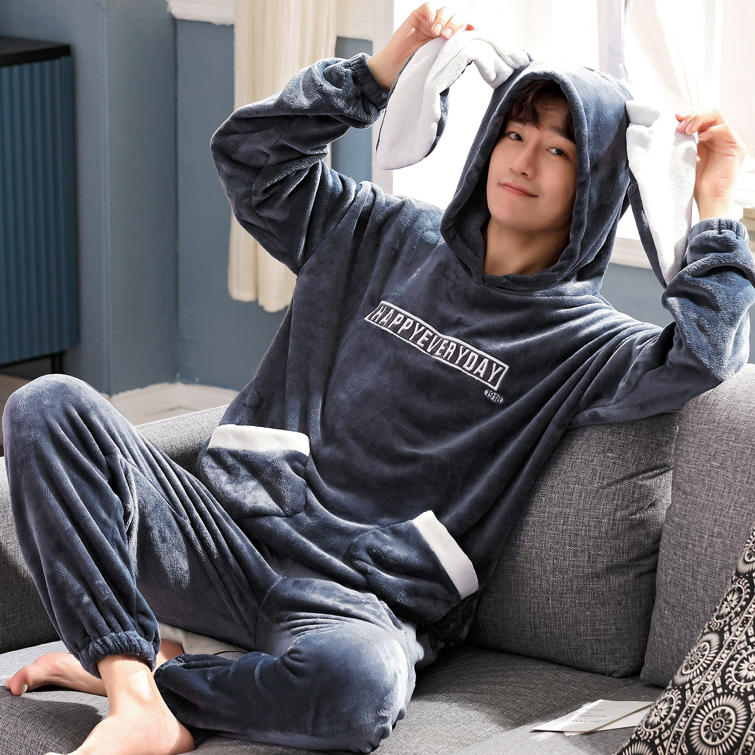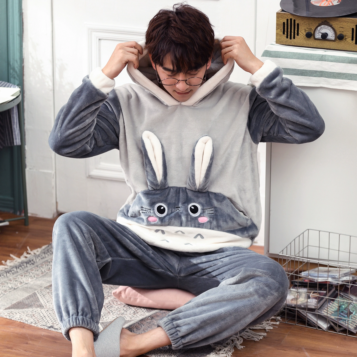 | nameOriginal | Winter thickened velvet warm coral velvet men's pajamas autumn and winter cartoon teenagers and students large size home clothes |