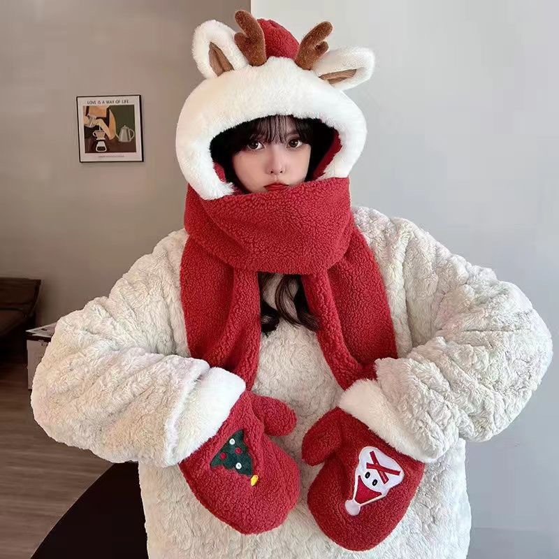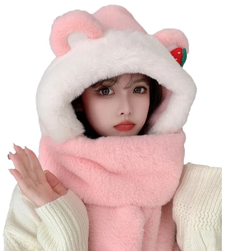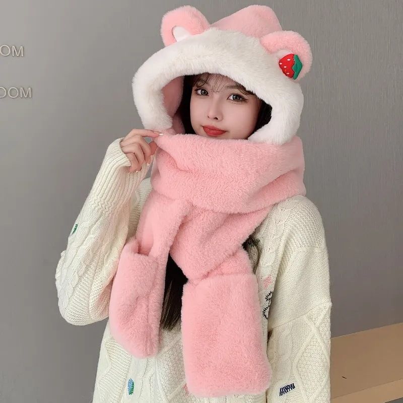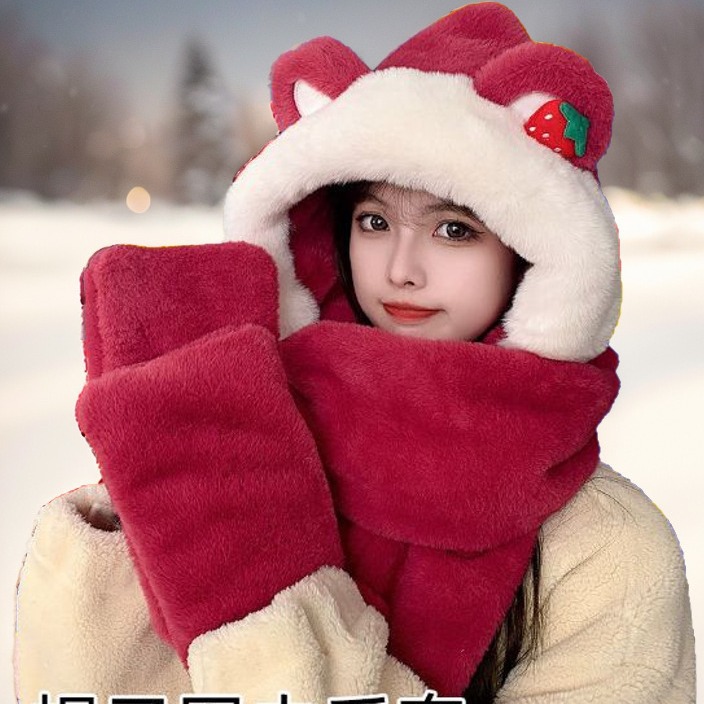 | nameOriginal | Winter three-piece cute strawberry bear ear scarf hat cold-proof warm closed hat female winter warm gloves |