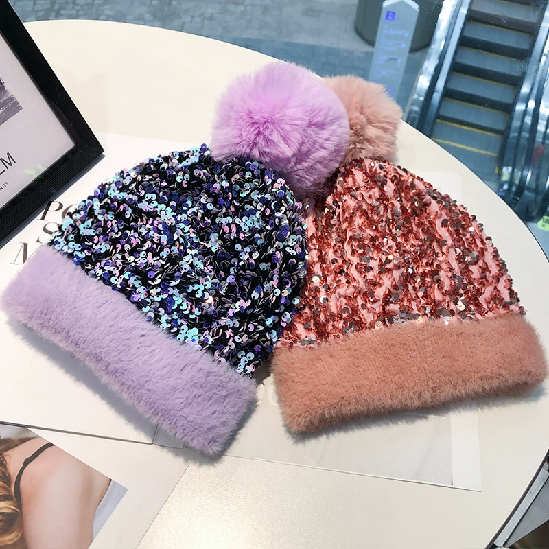 | nameOriginal | Winter warm woolen hat for women, Korean style fashionable sequined fur ball knitted hat, new velvet anti-cold hat for women |