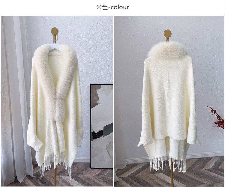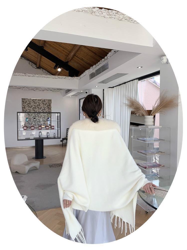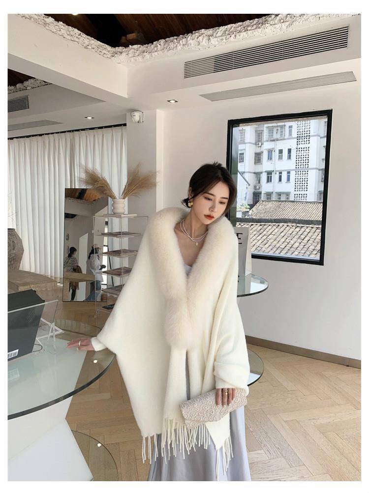 | nameOriginal | Winter white solid color large fur collar mink velvet sleeve cardigan versatile fashion warm shawl elegant autumn and winter shawl |