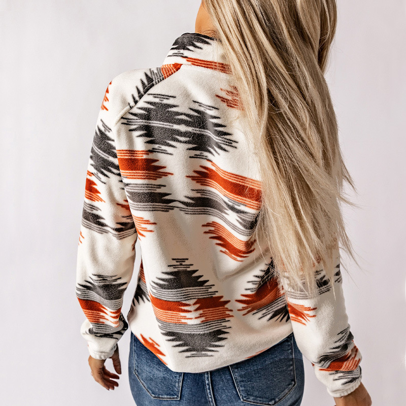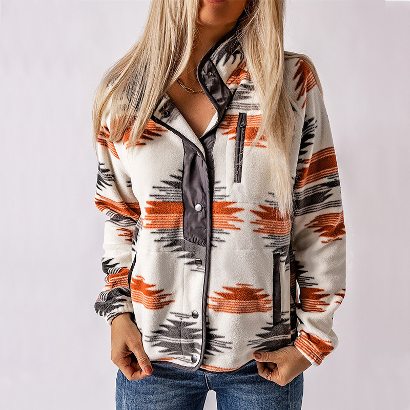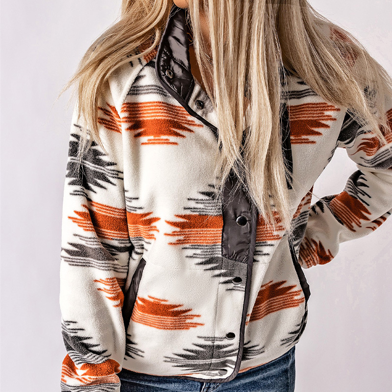 Winter women’s coat wholesale European and American ethnic style printed cardigan women’s new fashion contrast color fleece jacket Women’s
