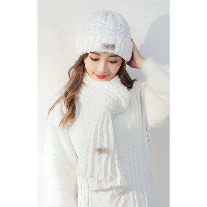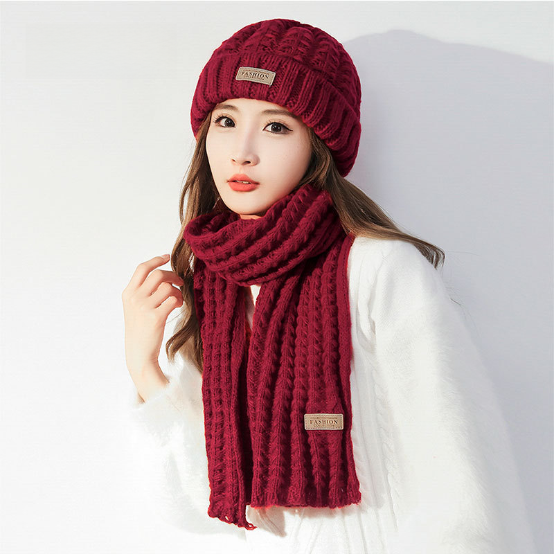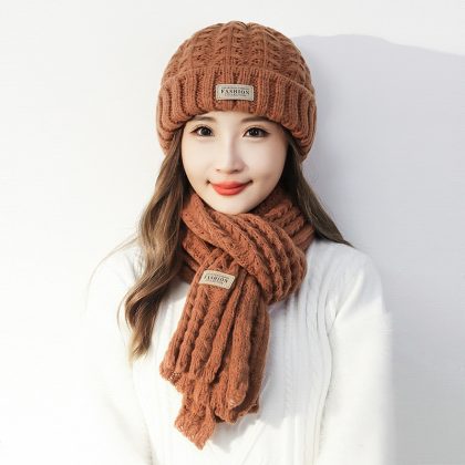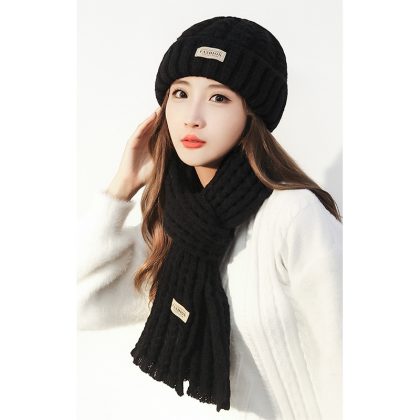 | nameOriginal | Winter Women's Korean-style warm scarf solid color woolen hat Internet Celebrity All-match two-piece set neck protection knitted hat |