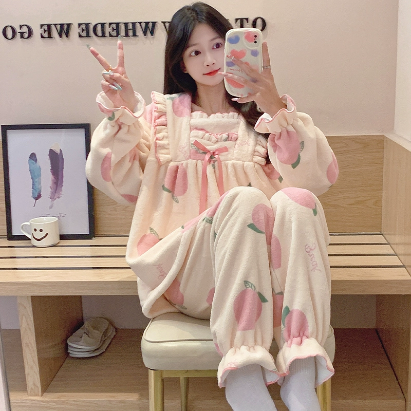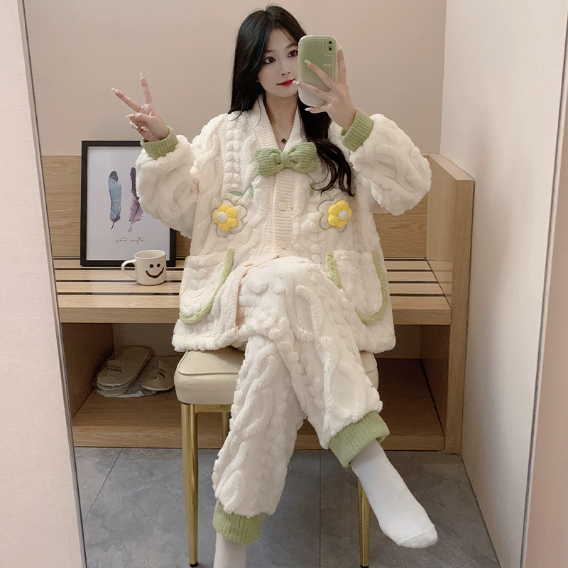| nameOriginal | Winter women's long-sleeved thickened flannel outer pajamas |