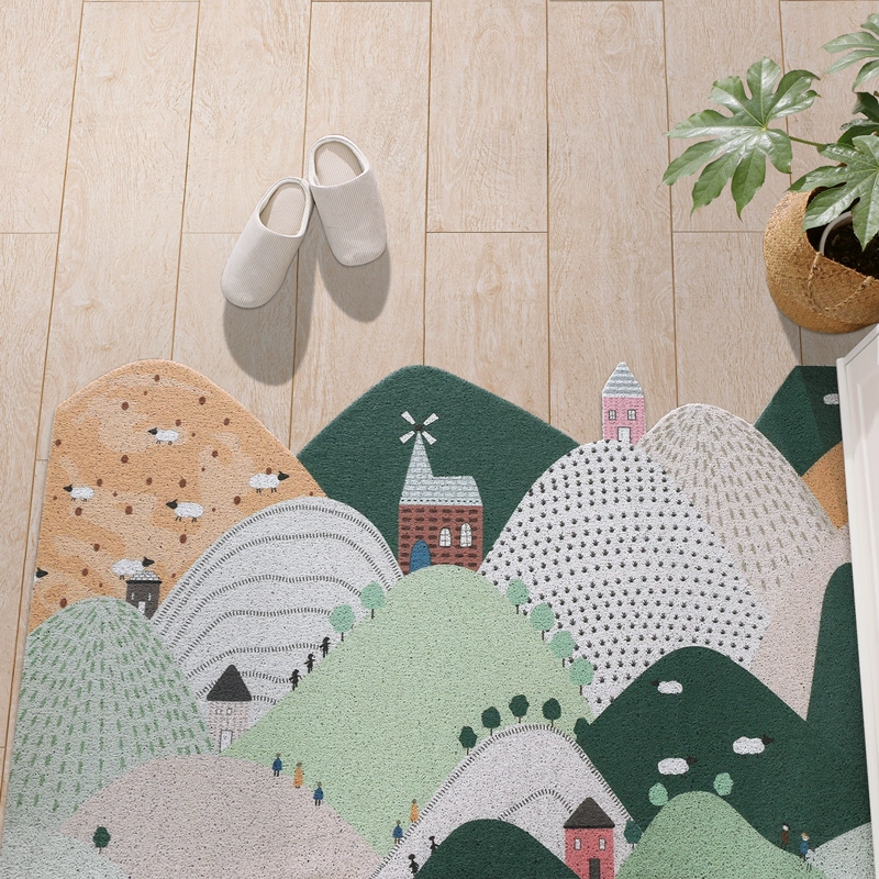 Wire ring entry door floor mats can be cut for home use, stain-resistant and waterproof door mats, foyer entrance mats, non-slip carpets