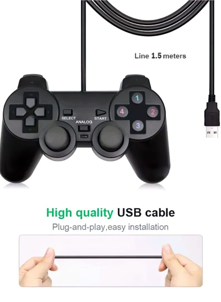 The 2-Piece PC Dual Shock Joypad Wired Vibration Gaming Controller is the perfect accessory for any avid gamer. This controller is designed to provide a comfortable and responsive gaming experience, with dual shock technology that delivers realistic vibrations to enhance your gameplay. The wired connection ensures a stable and reliable connection, while the 2-piece design allows for easy storage and transportation. With its ergonomic design and intuitive button layout, this controller is perfect for gamers of all skill levels. Whether you’re playing your favorite PC games or exploring new titles, the 2-Piece PC Dual Shock Joypad Wired Vibration Gaming Controller is the ultimate gaming accessory.