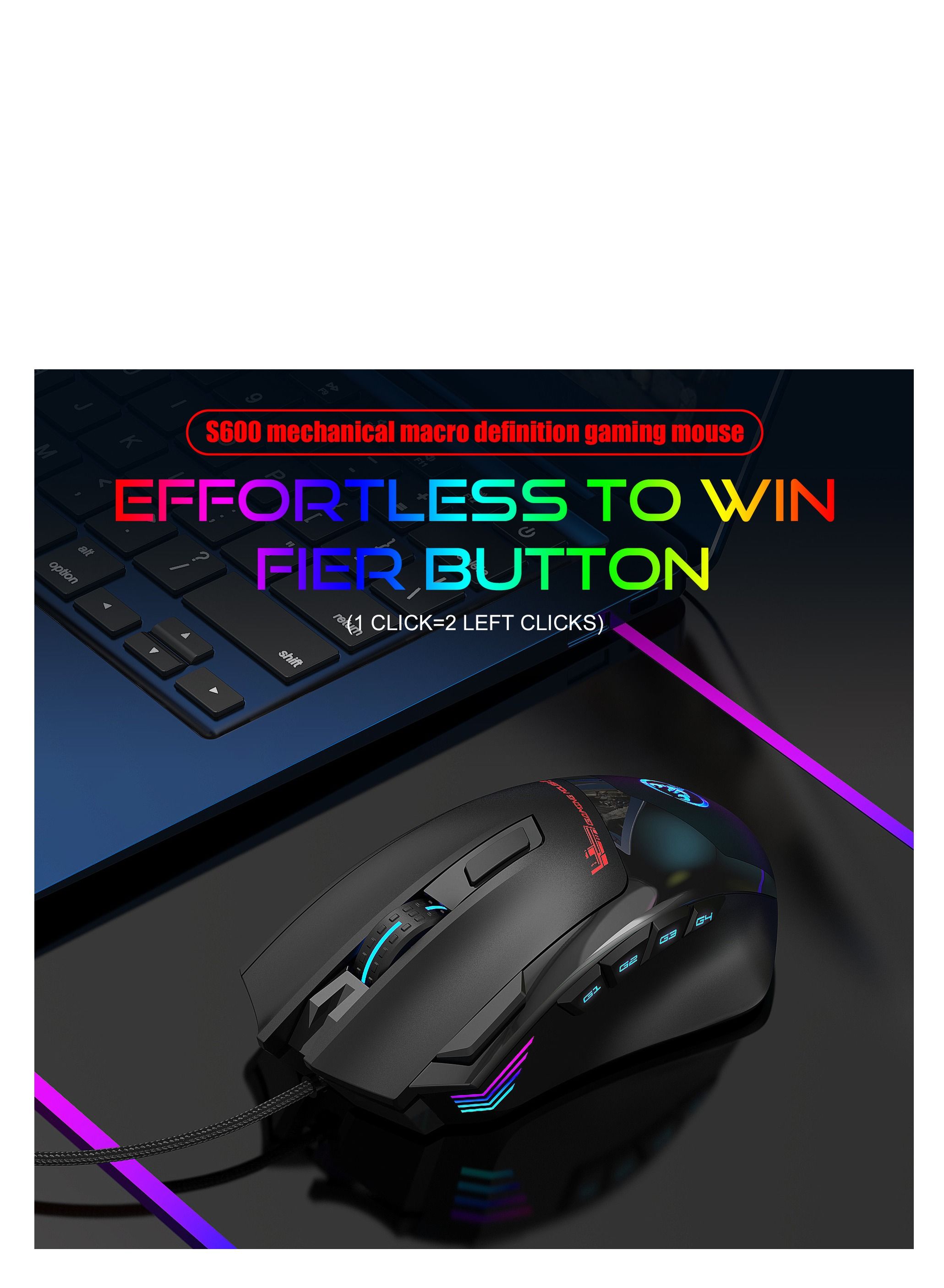 The Mechanical Wired Gaming Mouse 7200Dpi S600 is the perfect tool for gamers who demand precision and speed. With a high DPI of 7200, this mouse is capable of tracking even the slightest movements, allowing for quick and accurate responses in fast-paced games. The mechanical design of the mouse ensures a tactile and responsive feel, making it easy to execute complex maneuvers with ease. The wired connection ensures a stable and reliable connection, eliminating any lag or delay that could affect your performance. The S600 model is designed with a sleek and ergonomic shape that fits comfortably in your hand, reducing fatigue during long gaming sessions. Whether you’re a casual gamer or a professional esports player, the Mechanical Wired Gaming Mouse 7200Dpi S600 is the perfect choice for anyone looking to take their gaming to the next level.